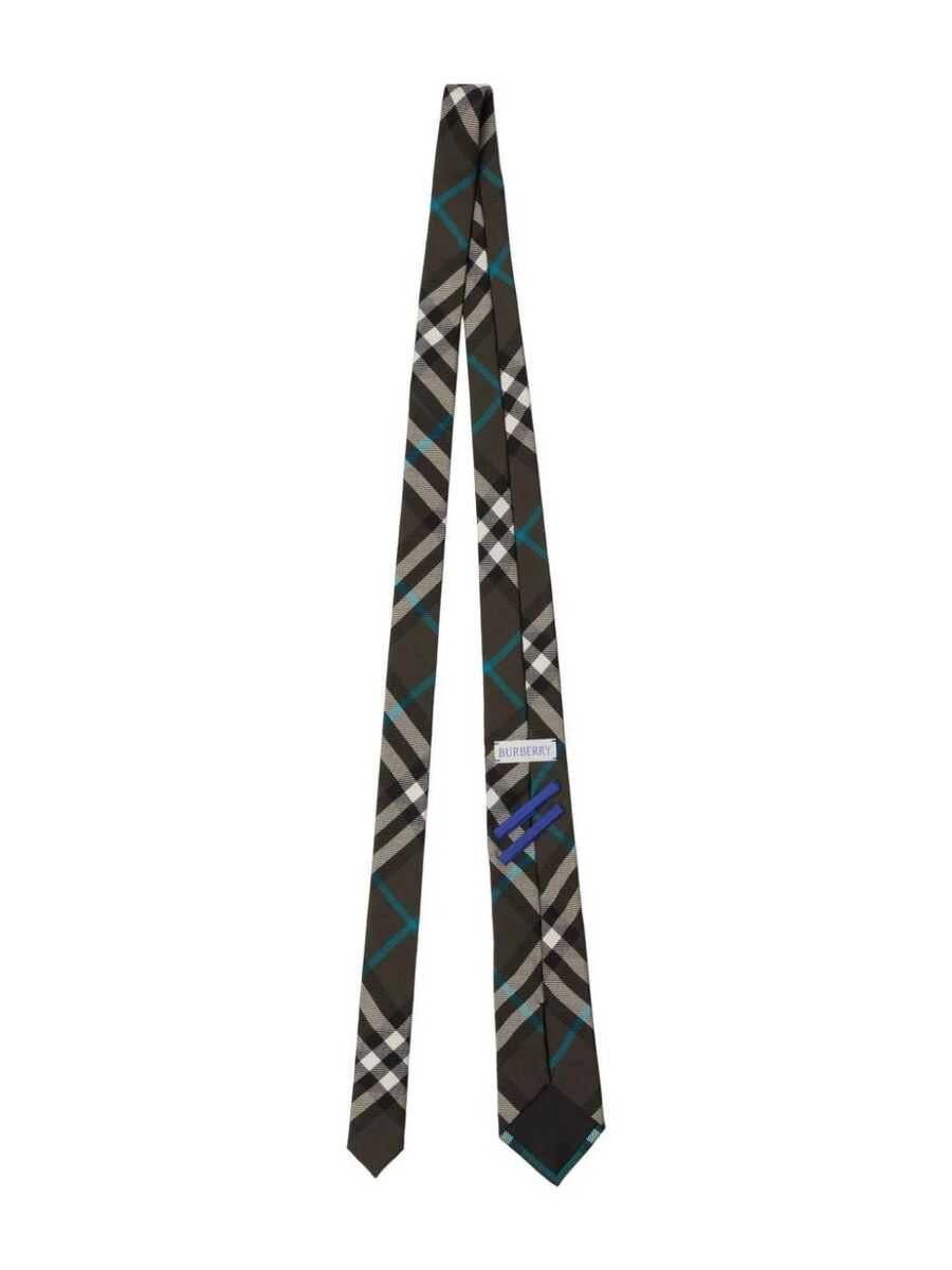 olive green/multicolour silk nova check pattern pointed tip rear keeper loop