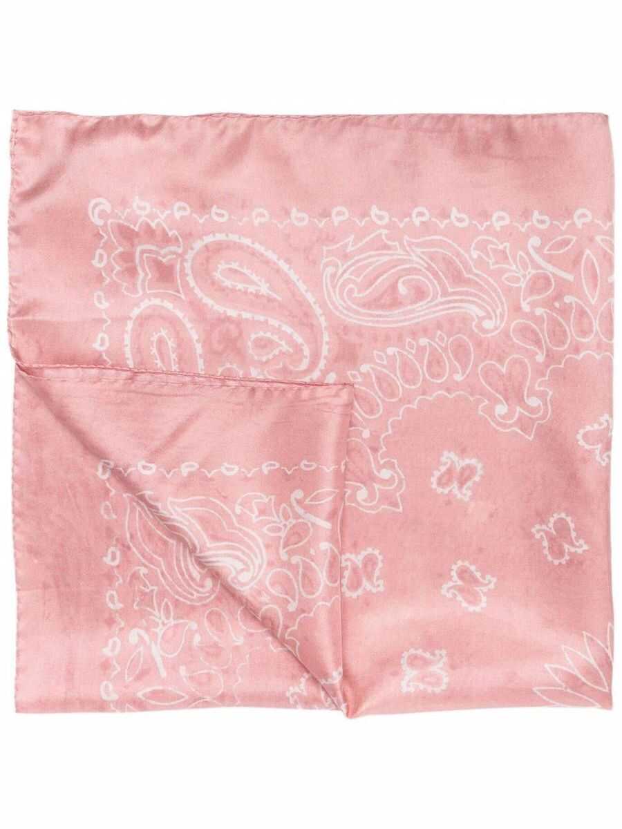 Antique rose silk silk bandana scarf from Golden Goose featuring bandana print, lightweight construction, square shape and straight hem.