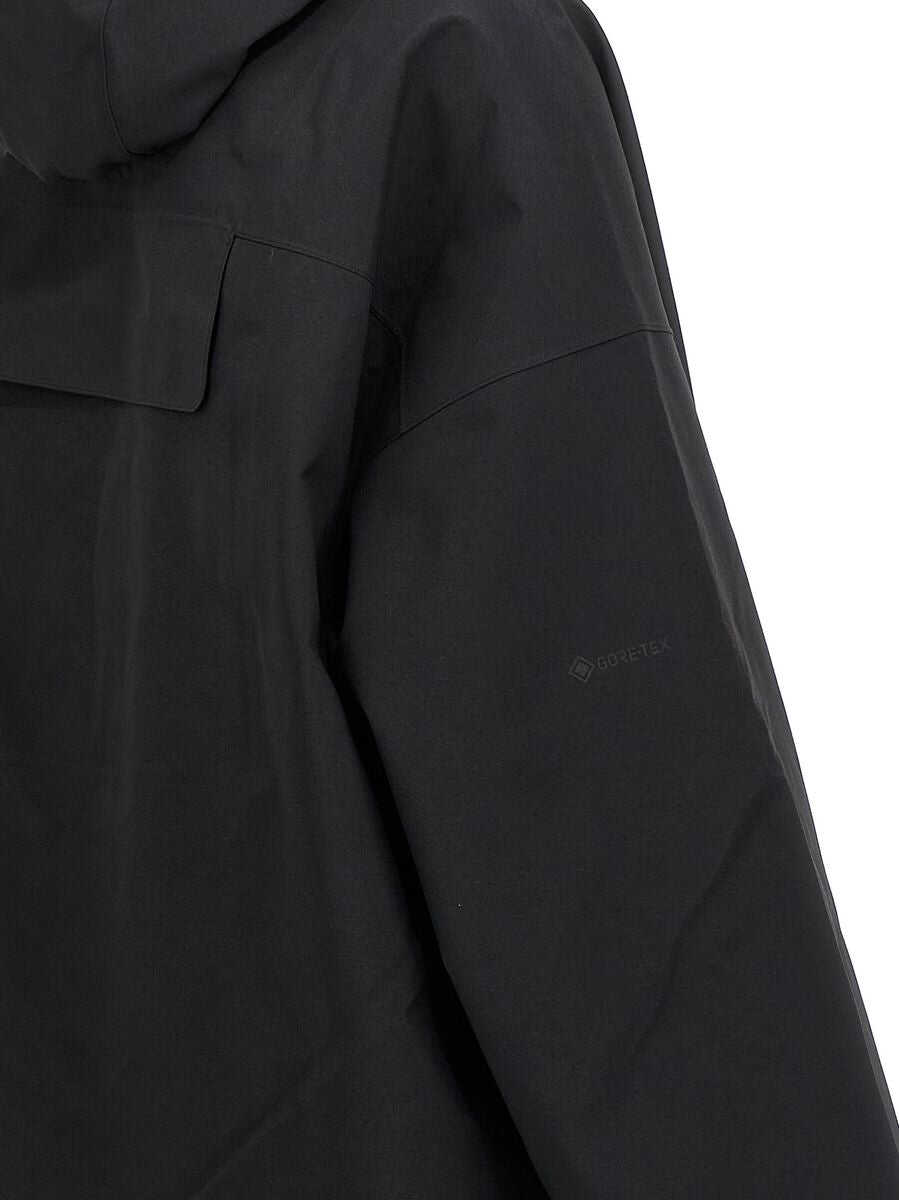 A WATERPROOF, WINDPROOF Y-3 SHELL JACKET. In looking to the outdoors for inspiration, Y-3 explored functionality and unpredictability and found the connection between the two in a technical aesthetic. The Y-3 GORE-TEX Hard Shell Jacket is designed to block out the cold, comfortably layering with a relaxed fit. Hook-and-loop cuffs and the hidden cord stopper help trap heat and keep out the chill.