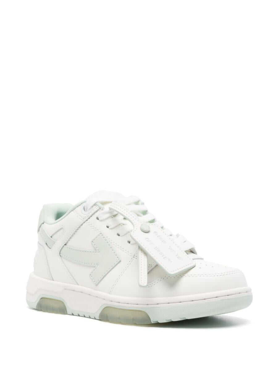 white/mint green calf leather front lace-up fastening branded heel counter logo patch at the tongue signature Arrows patch to the side signature Zip Tie tag perforated toebox round toe branded insole padded ankle flat rubber sole This piece comes complete with a protective dust bag. Due to the dyeing process used, this product must not come into contact with water.