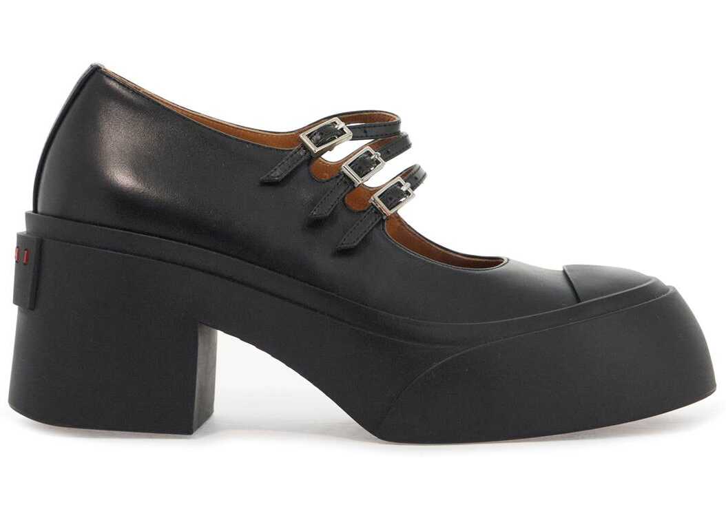 The Mary Jane Pablo by Marni are made of leather with a triple adjustable strap and feature the iconic maxi rubber sole with platform and toe. The interior is lined in leather and the sole is made of rubber.