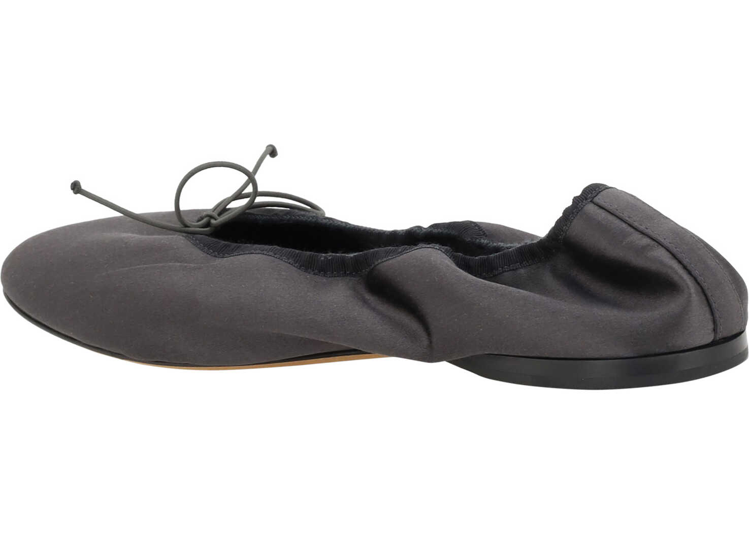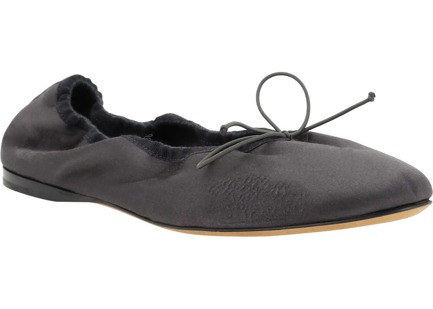 Satin Hereditas Ballerinas by The Row, round toe, applique bow at front, elasticized heel, flat sole, branded insole.