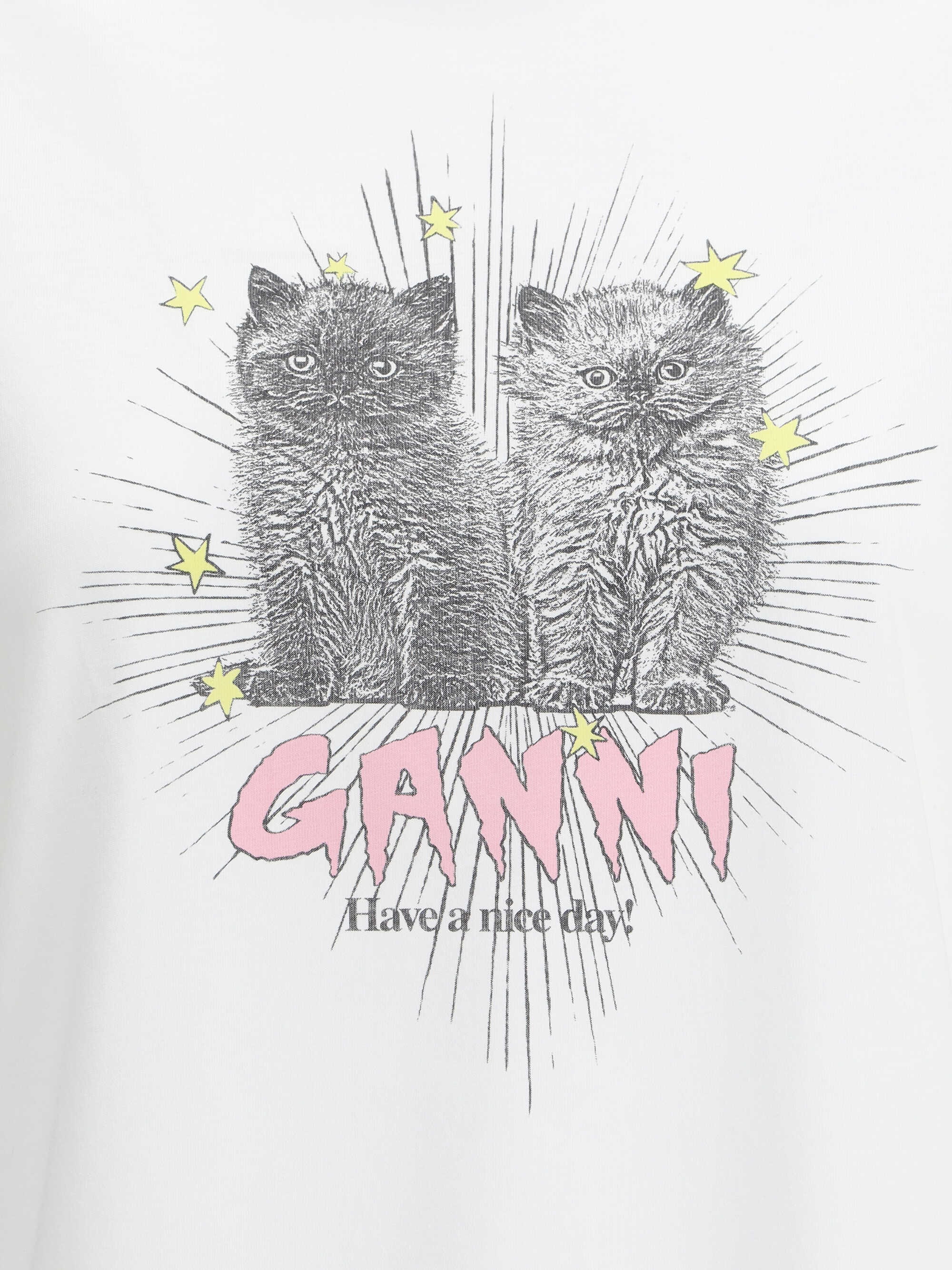 Cotton Kittens T-Shirt by Ganni, ribbed crew neck, maxi print with contrasting iconic brand monogram on front, monochrome pattern, regular fit.