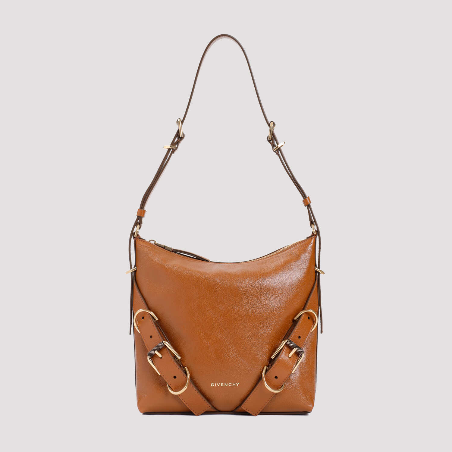 Elevate your style with this luxurious Givenchy cross body bag. Crafted from pure soft tan buffalo leather, it features an adjustable shoulder strap, gold-tone hardware, and a spacious main compartment. Perfect for adding a touch of sophistication to any outfit.