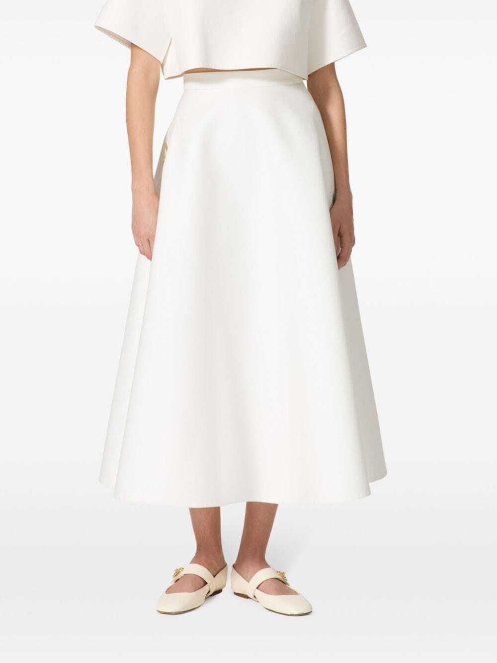 Elevate your style with this stunning Valentino Garavani White Skirt. Made for the modern woman, this elegant piece exudes sophistication and grace. Perfect for any occasion, this skirt is a timeless addition to your wardrobe. Embrace luxury and beauty with Valentino Garavani.