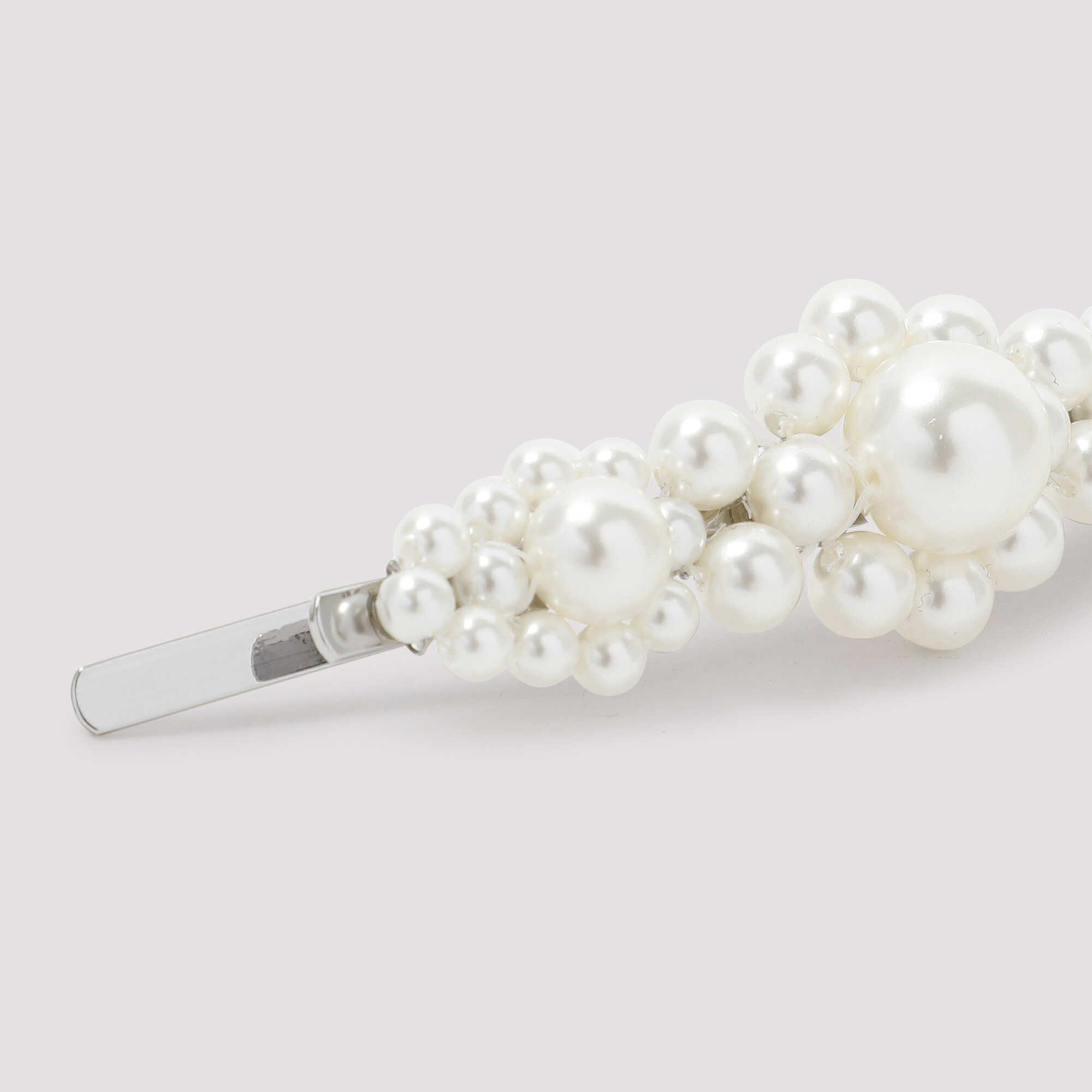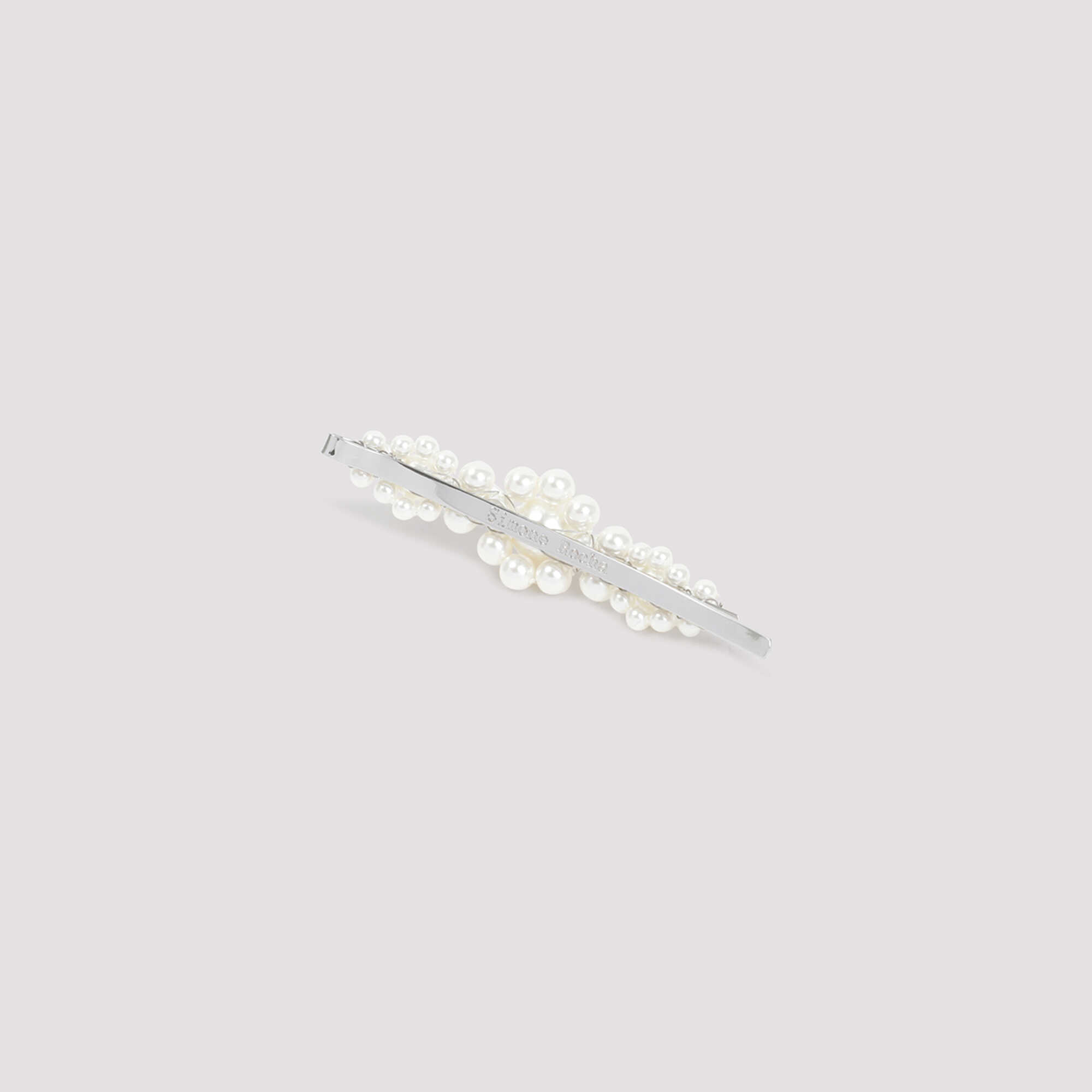 Elevate your look with the exquisite Simone Rocha CLP3.0904 hair clip. This stunning accessory features a white color, crafted with a blend of brass, pearl, and crystal materials. The intricate design showcases a large flower adorned with lustrous pearl beads, perfect for adding a touch of elegance to any outfit. Complete your ensemble with this luxurious Simone Rocha piece.