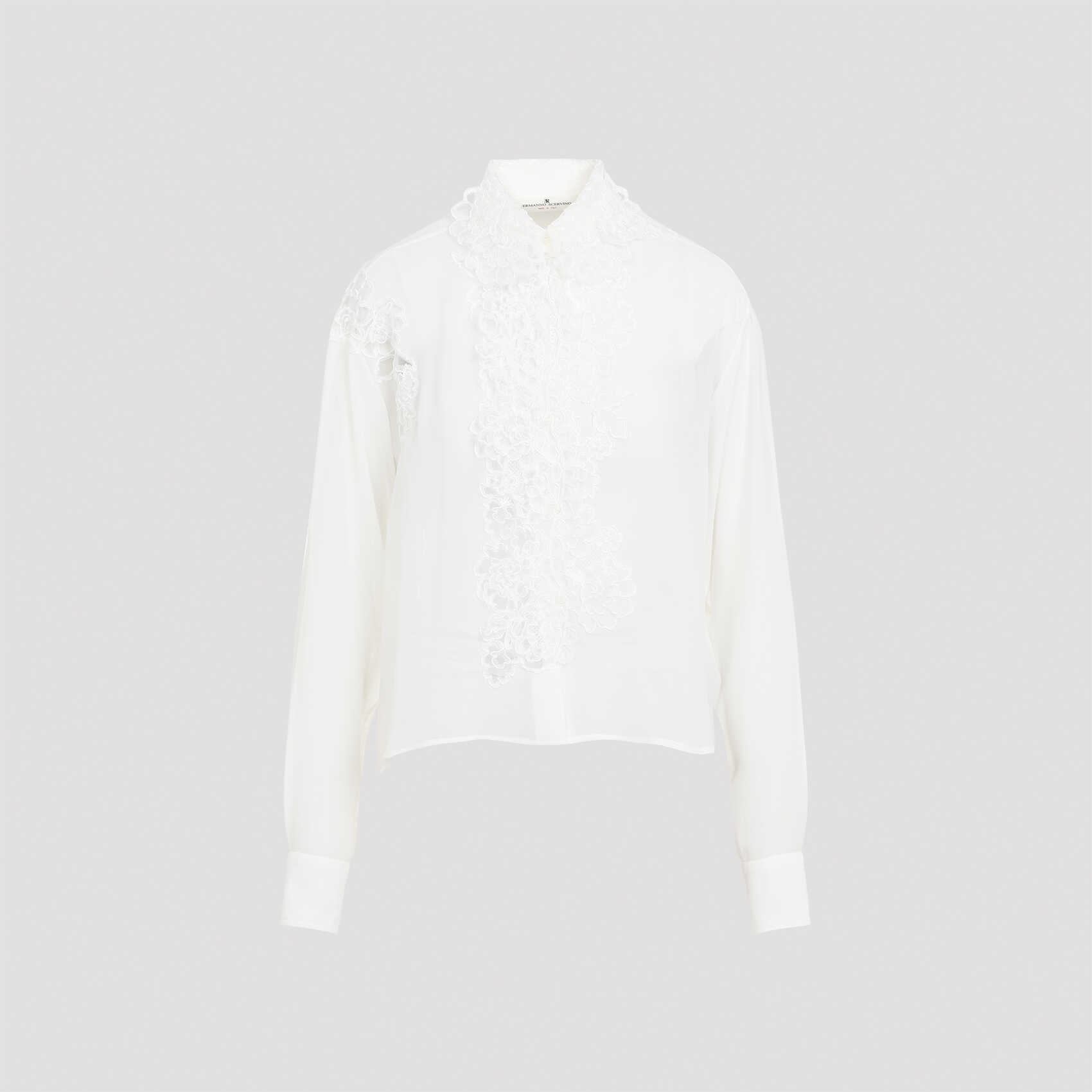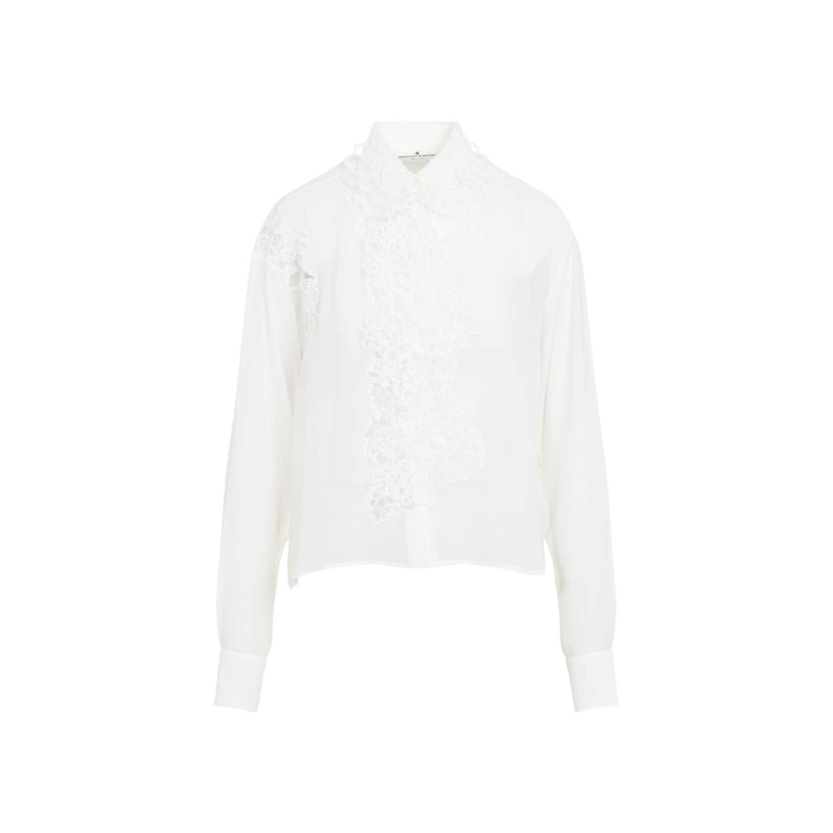 Elevate your style with this stunning White silk shirt from ERMANNO SCERVINO. Made from 100% Silk, this shirt is perfect for adding a touch of luxury to your wardrobe. The intricate detailing and elegant design make it a must-have for any fashion-forward woman. Step out in style and make a statement with ERMANNO SCERVINO D452K767GET.