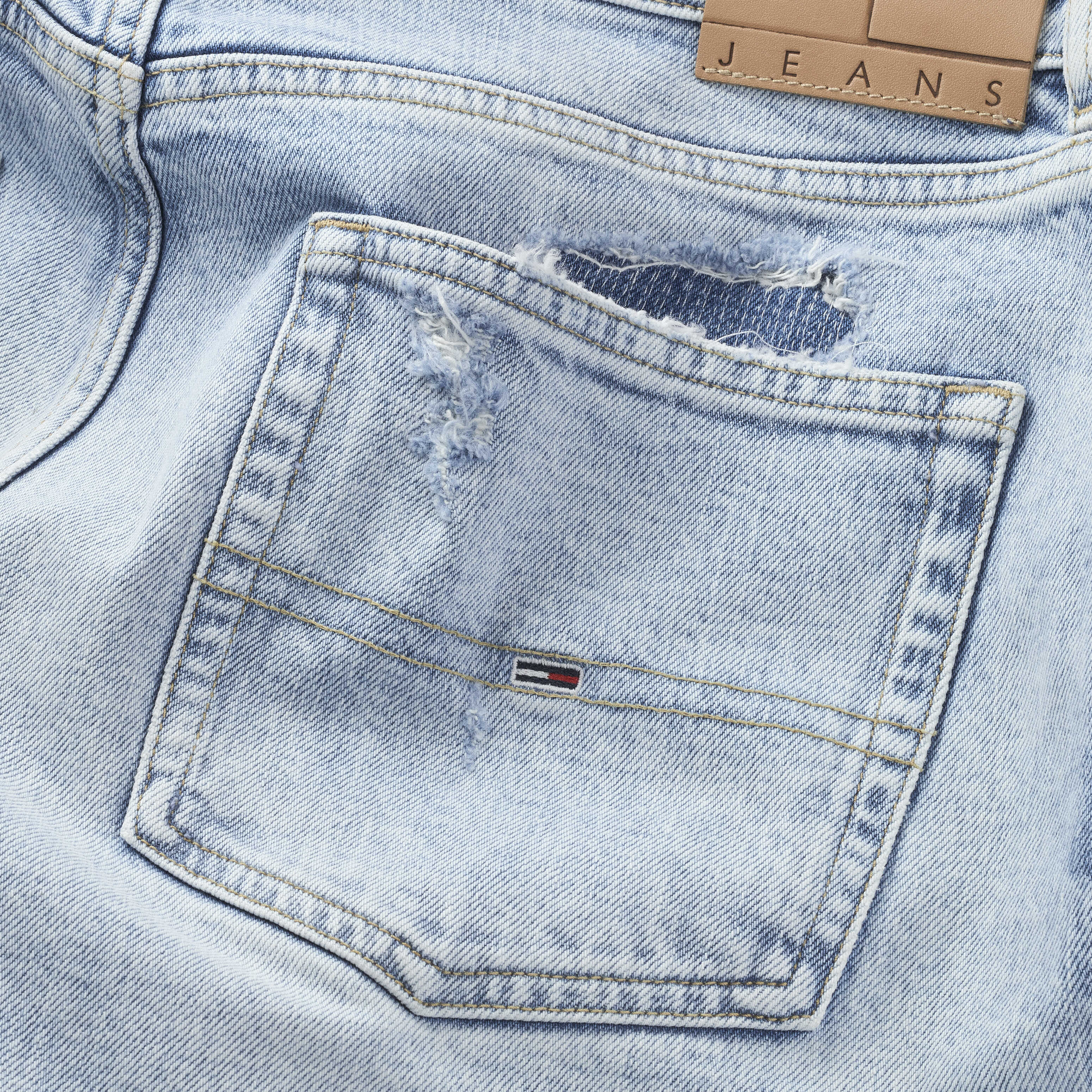 The relaxed fit jeans, finished with bold distressed details, add a touch of grunge inspiration to your casual outfits. Main features Stretch recycled cotton denim Distressed details at the waist, thighs, knees and back All-over fading Zip and button closure Five pocket model Branding Collection Flag patch on the coin pocket and back pocket Composition and washing 98% cotton, 2% elastane