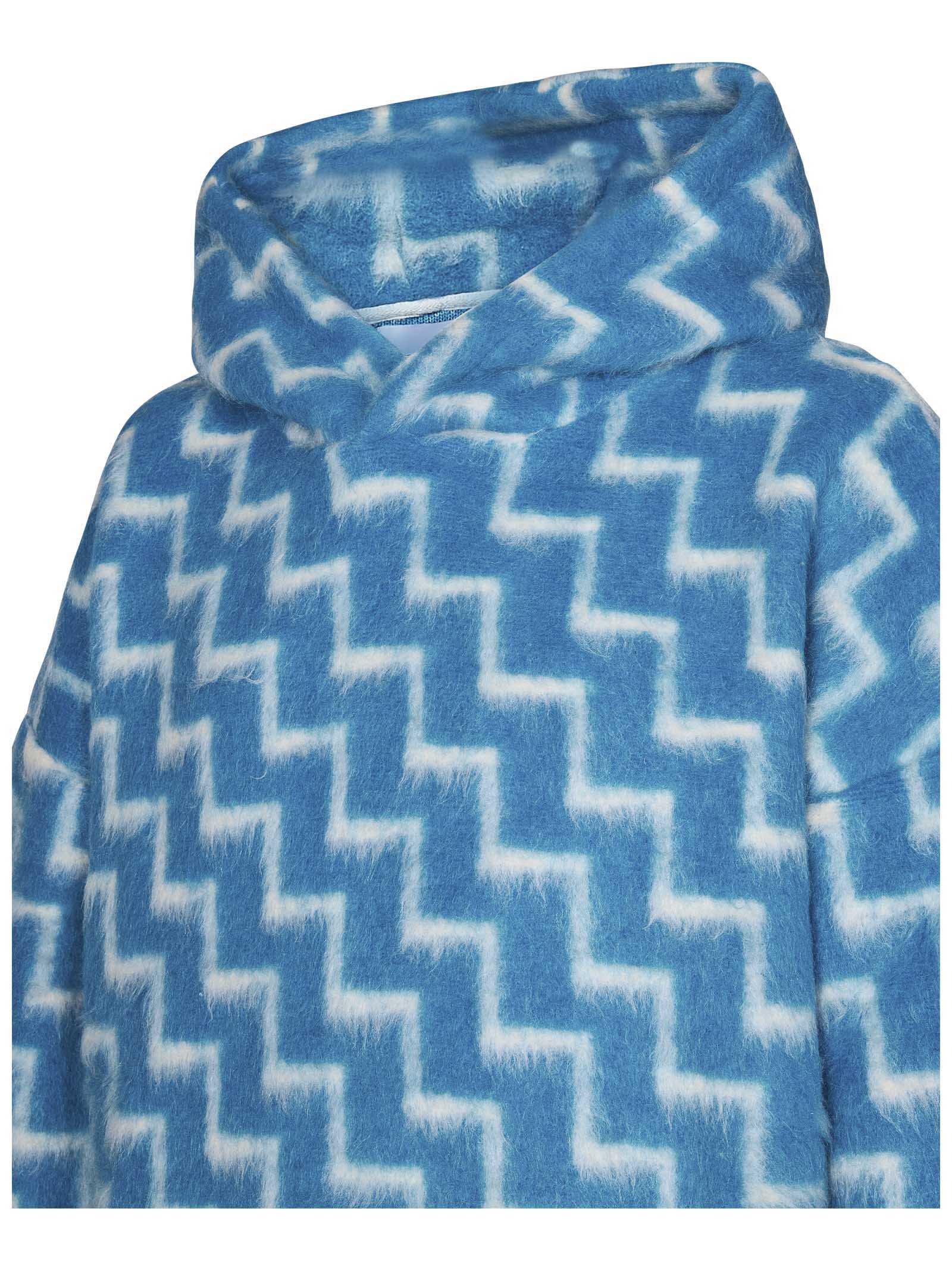 Light blue wool and cashmere blend hoodie with all-over white zigzag pattern.