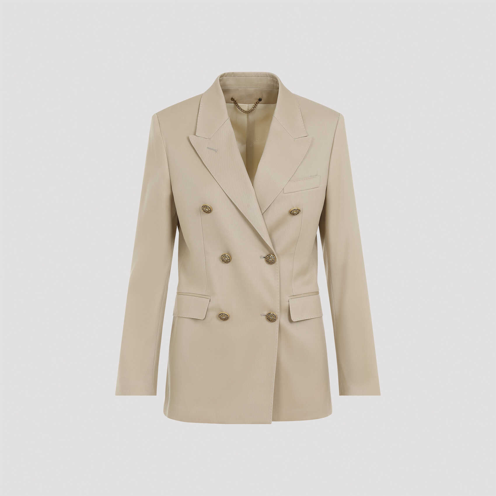 Elevate your style with this luxurious GOLDEN GOOSE blazer in neutral tones. Made from 100% virgin wool, this elegant piece is perfect for any occasion. Stand out with this high-quality addition to your wardrobe.