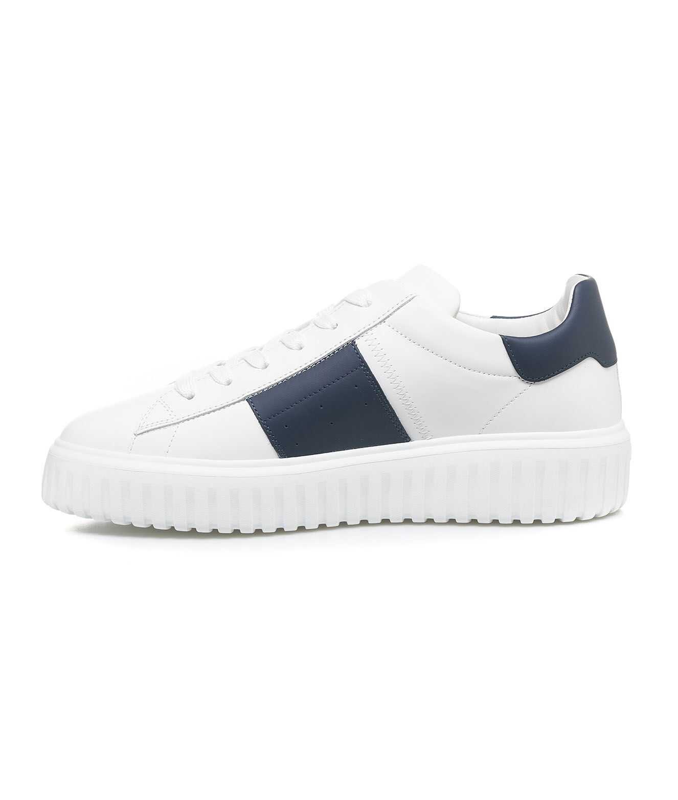 Step up your style game with these sleek white sneakers from HOGAN. Crafted from a mix of premium leather and textile, these 'H-Stripes' sneakers feature a comfortable memory foam insole and a durable EVA sole. Perfect for everyday wear, these sneakers are a must-have for any modern man's wardrobe. Elevate your look with HOGAN.