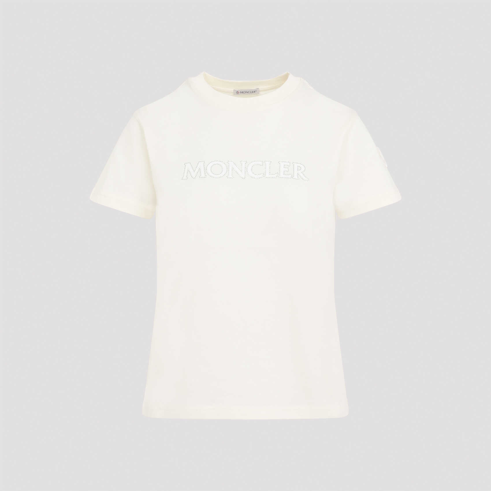 Elevate your style with this chic MONCLER T-shirt. Made from 100% cotton in beige and neutral tones, it offers a perfect blend of comfort and elegance. Perfect for any occasion, this versatile piece is a must-have for your wardrobe.