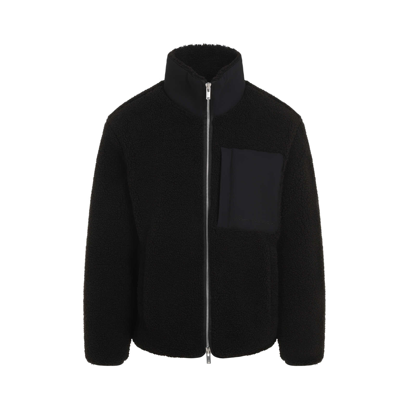Stay warm and stylish in this Moose Knuckles Saglek 3 Sherpa Jacket. Made from 100% recycled polyester, this black jacket features faux-shearling, a standing collar, and a logo patch on the sleeve. Perfect for a casual day out or a night on the town. Order yours now!
