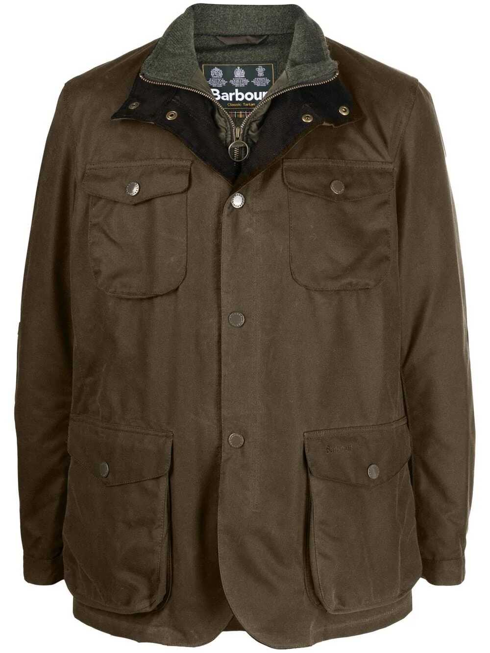 Questa Giacca Ogstone di Barbour presenta chiusura frontale con bottoni automatici logati e patta frangivento.Patta antivento interna fissa chiusa con cerniera a doppio cursore .Fodera in velluto a coste. Quattro tasche applicate sul davanti chiuse con automatici logati.