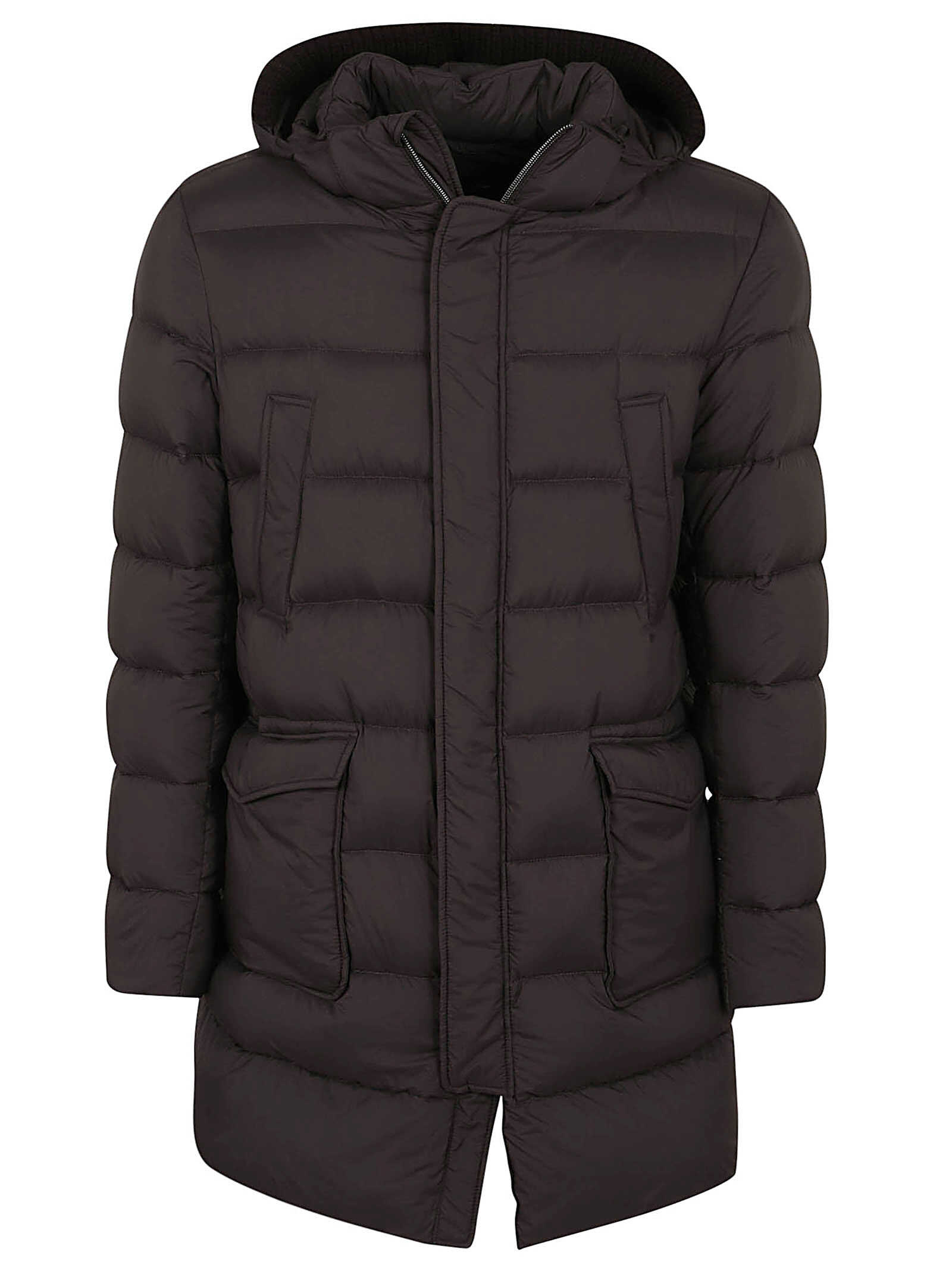 Stay warm and stylish with this classic brown HERNO jacket. Featuring a hood, double slider zip closure, and multiple pockets for functionality. Made with high-quality Polyamide and Goose Down for ultimate comfort. Get yours now!