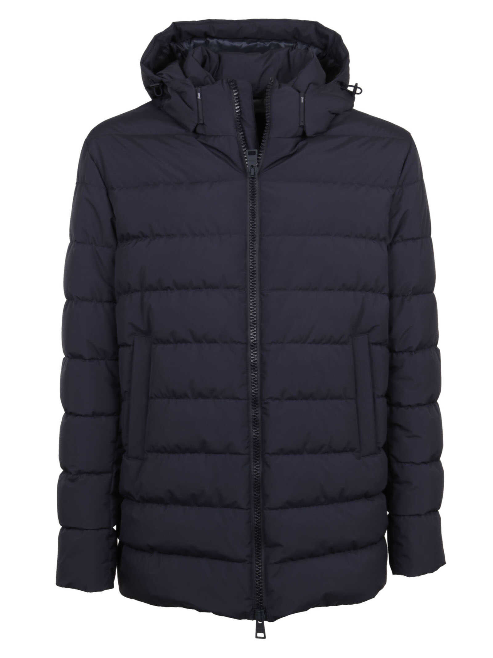 Stay warm and stylish with the Blue HERNO parka. Made with gore-tex infinium windstopper fabric, this jacket features a detachable hood, double slider zip closure, and flap pockets. The regular fit design and goose down padding ensure comfort and protection from the wind. Upgrade your winter wardrobe with this must-have piece.