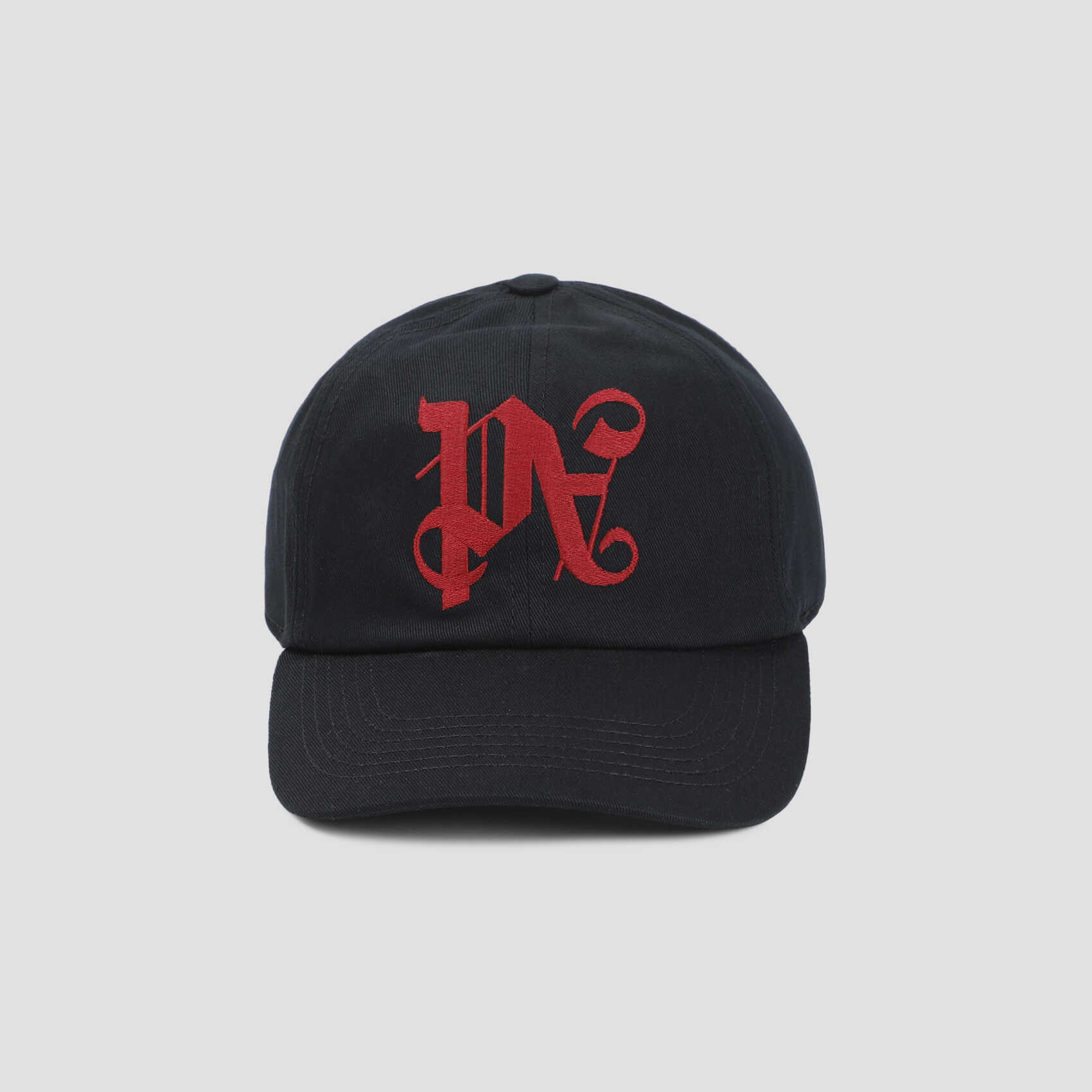 Enhance your style with this sleek black cotton hat from PALM ANGELS. Featuring a bold red embroidered logo on the front, tonal visor, and six-panel construction, this hat is the perfect accessory for any outfit. Made from 100% cotton, it offers both comfort and style. Elevate your look with PALM ANGELS.
