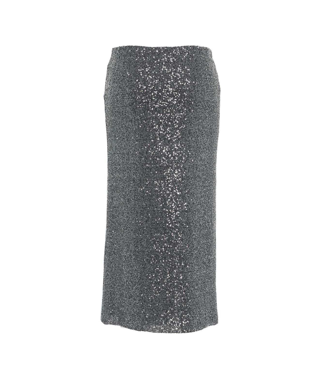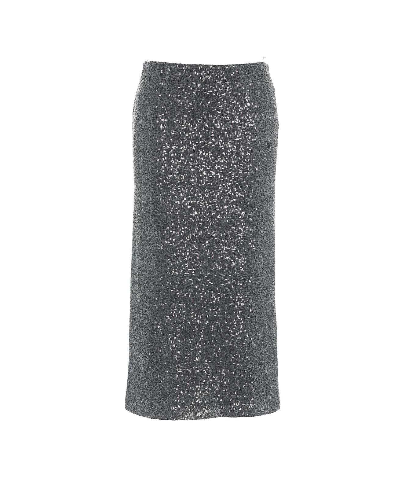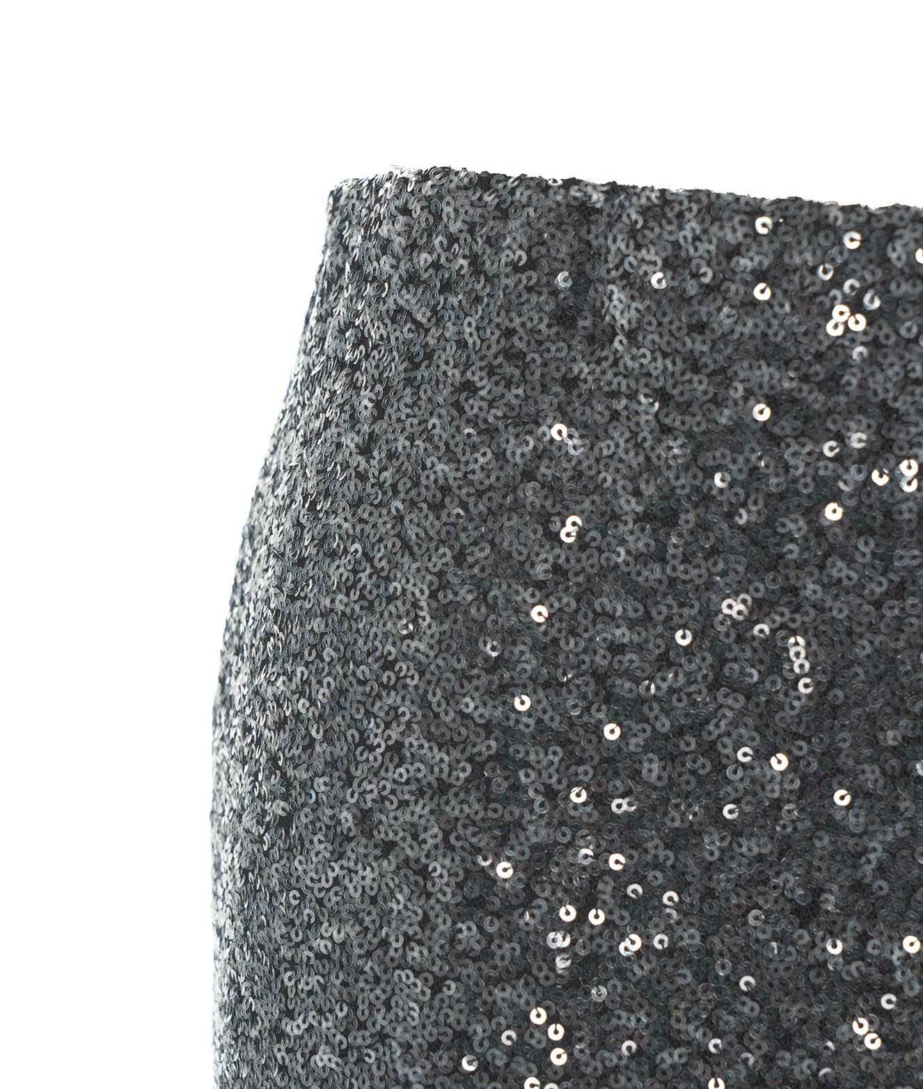 Elevate your wardrobe with this stunning silver midi skirt adorned with sequins. Perfect for any occasion, it features a hand wash material and a comfortable fit. Embrace style and grace with the exquisite craftsmanship of OTTO D AME.