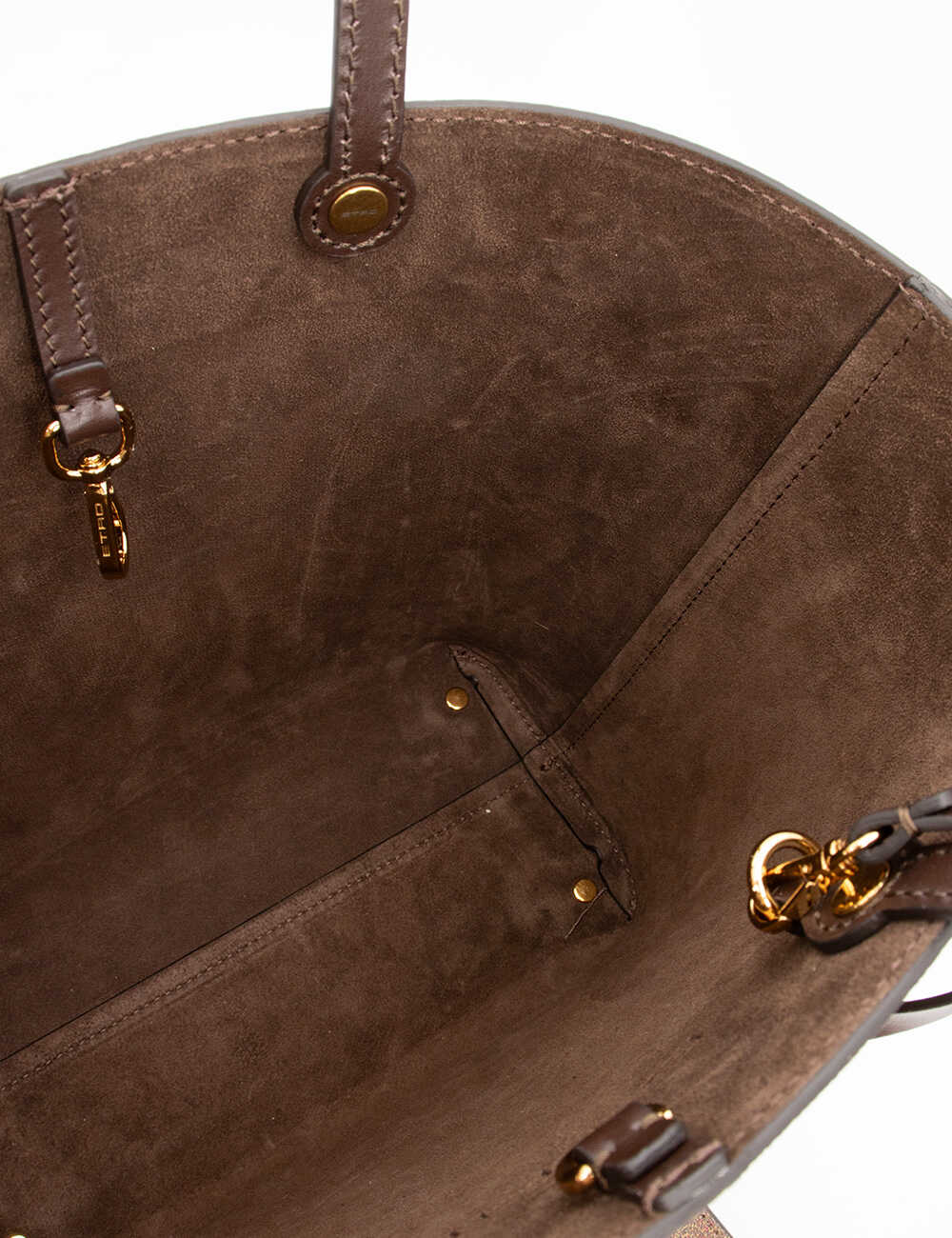 Elevate your style with this stunning BROWN shopping bag from ETRO. Crafted from a blend of 76% cotton and 24% polyester, this bag features the iconic paisley jacquard pattern with leather details. The practical removable internal clutch adds versatility, while the elegant design effortlessly complements any outfit. Perfect for the fashion-forward woman who values both style and functionality.