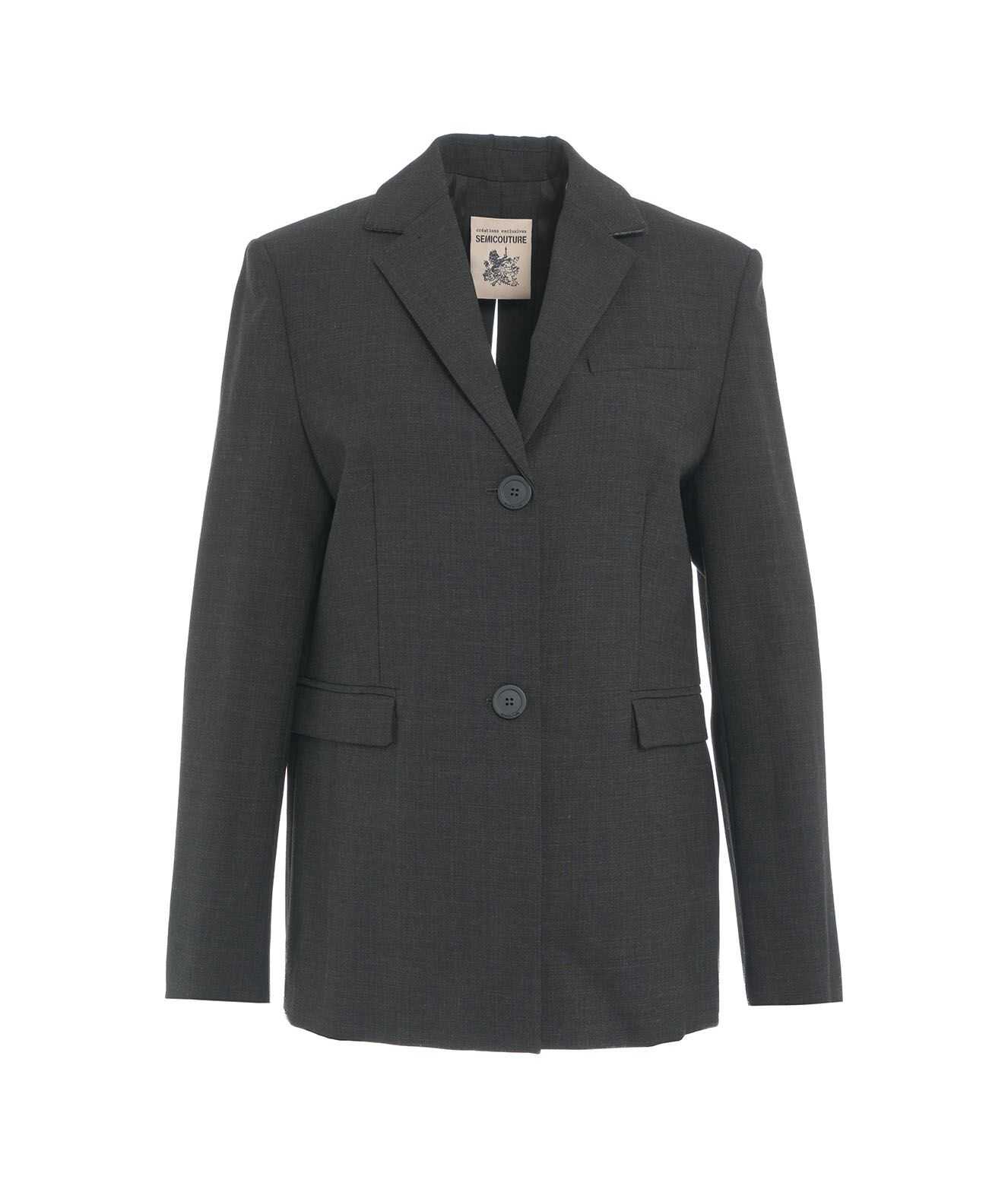 Elevate your wardrobe with this stylish Grey Blazer from SEMICOUTURE. Featuring a back slit design, this blazer is perfect for any occasion. Made from a luxurious blend of Polyester, Wool, and Elastane with a Viscose and Acetate lining. Dry clean only. Add a touch of sophistication to your look with this must-have piece.
