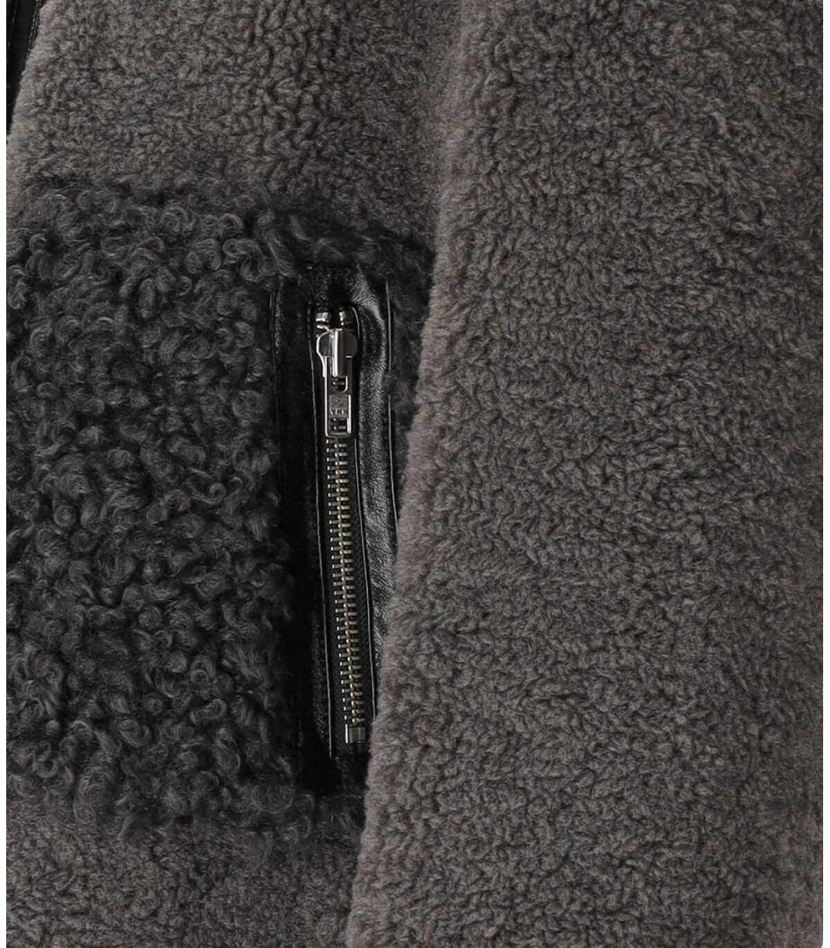 Joann jacket by Stand Studio made of curly synthetic fur in gray. Characterized by a double-slider front zipper and dropped shoulders, it features a pointed collar. Equipped with applied front pockets and a zip pocket on the chest. Finished with faux leather details. Oversized fit. Outer composition: 100% polyester. Lining composition: 100% polyester. Padding: 100% polyester. Details: 57% polyurethane, 43% polyester.