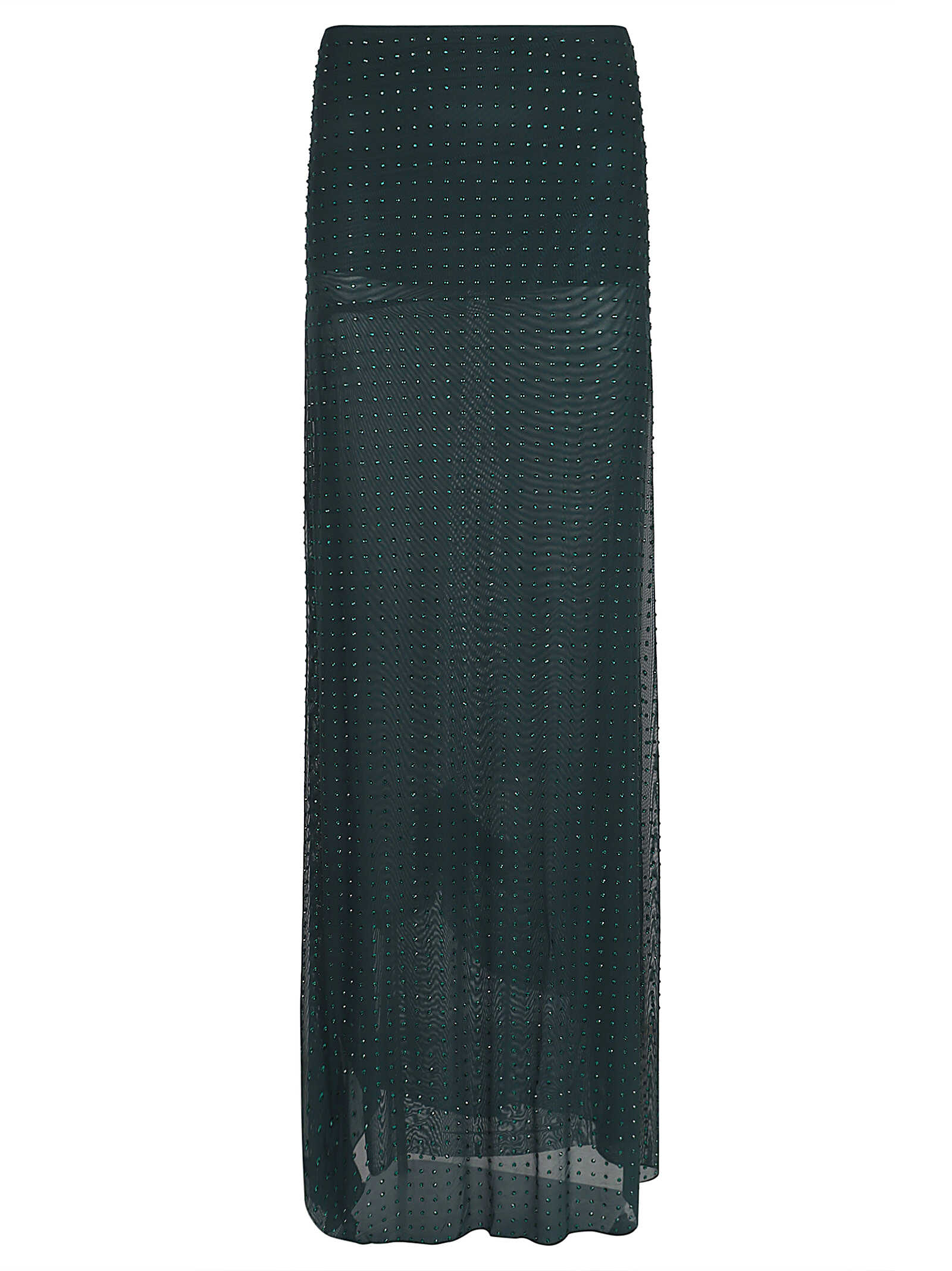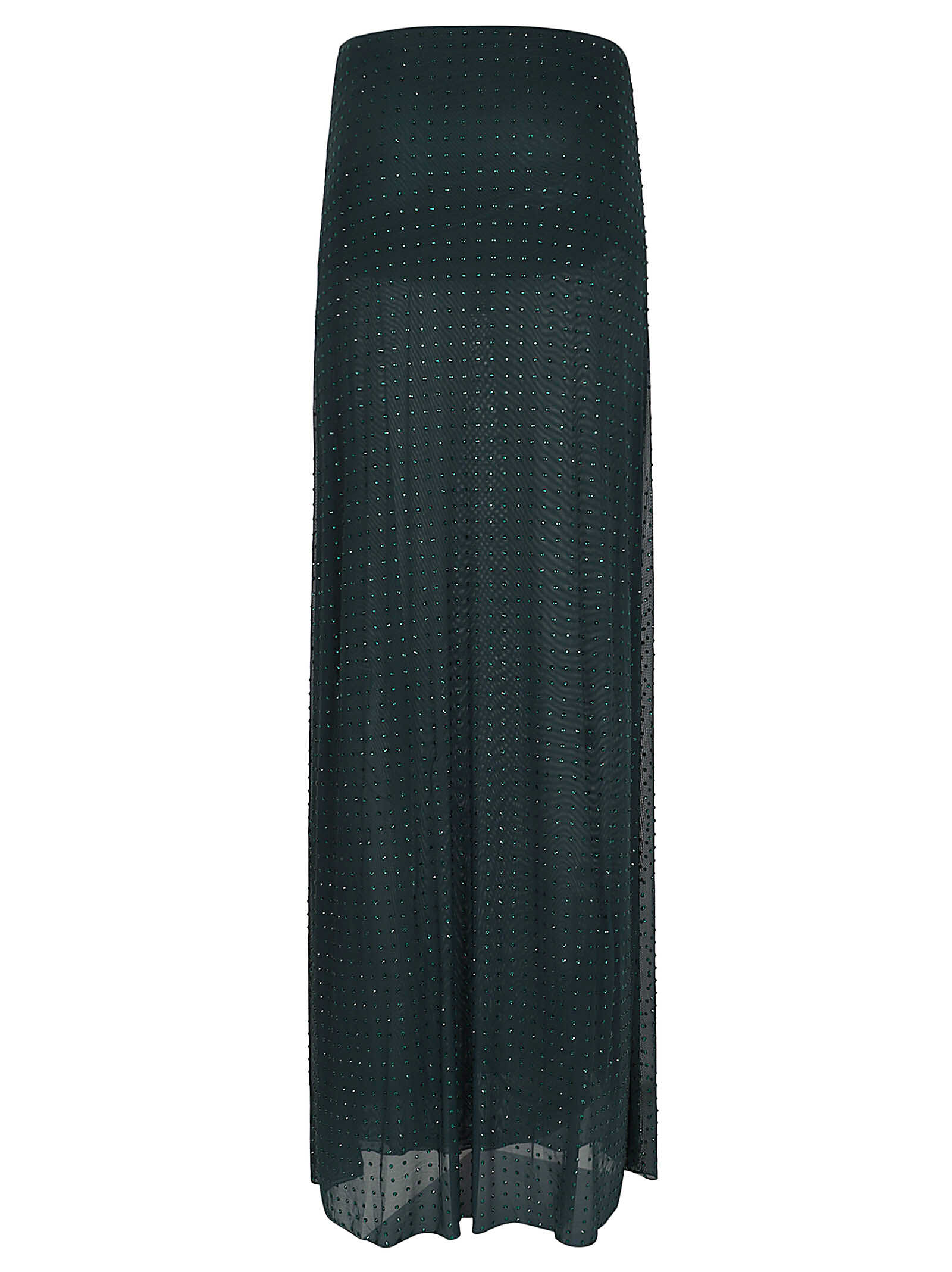Stand out in style with this elegant Green skirt by PINKO. Featuring a long straight design with an elastic waist, this skirt is adorned with tonal rhinestone detail for a touch of glamour. Made from high-quality Polyamide material, this skirt offers a regular fit and is a must-have for your wardrobe. Get yours today!