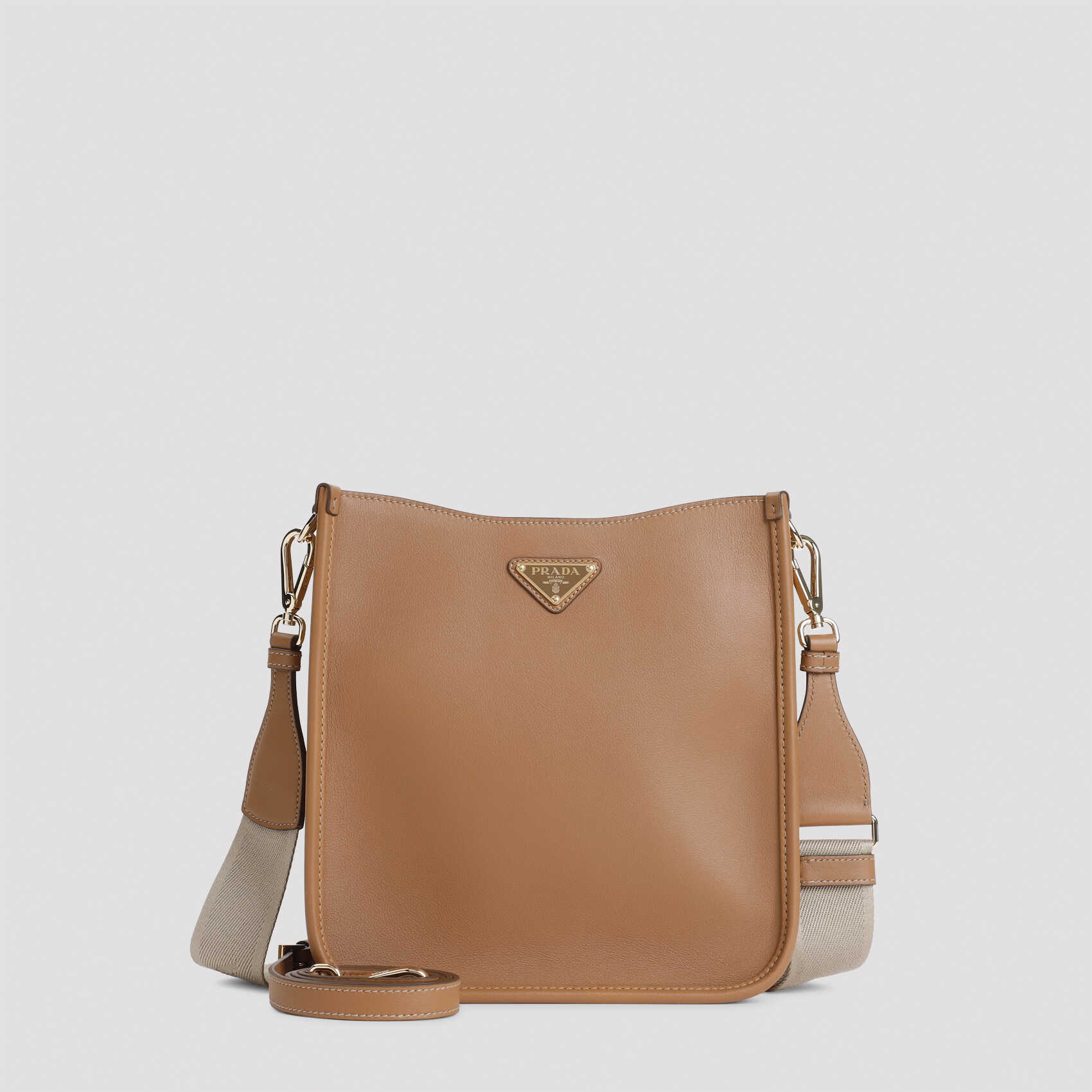 Elevate your style with this luxurious Prada shoulder bag. Crafted from 100% calf leather, this caramel brown bag features a top zip closure, adjustable shoulder strap, and gold-tone hardware. Perfect for any occasion, this bag is both chic and functional. Add a touch of sophistication to your look with the PRADA 1BH219VRVO.2CYS bag.