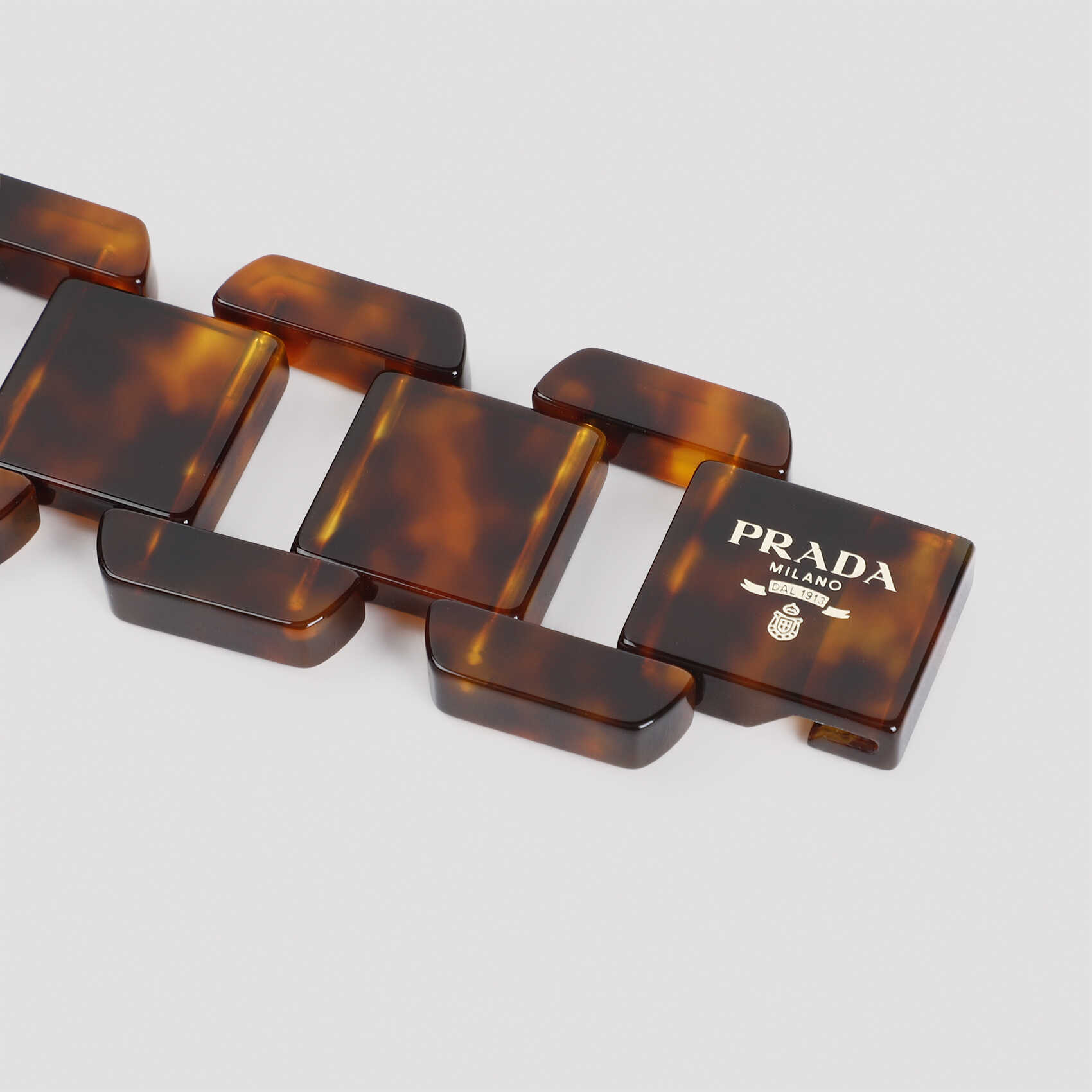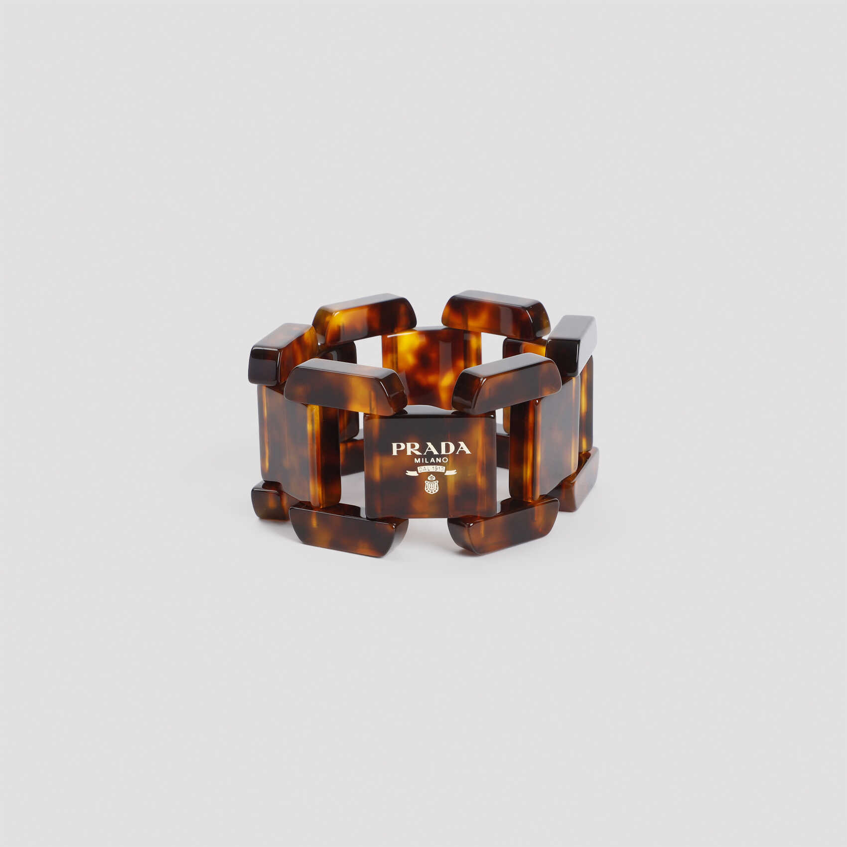 Elevate your accessory game with this stunning Prada bracelet in nude and neutral tones. Crafted from a mix of plexiglass and brass, featuring a gold-tone printed logo on the front and a convenient snap fastening. Perfect for adding a touch of luxury to any outfit.