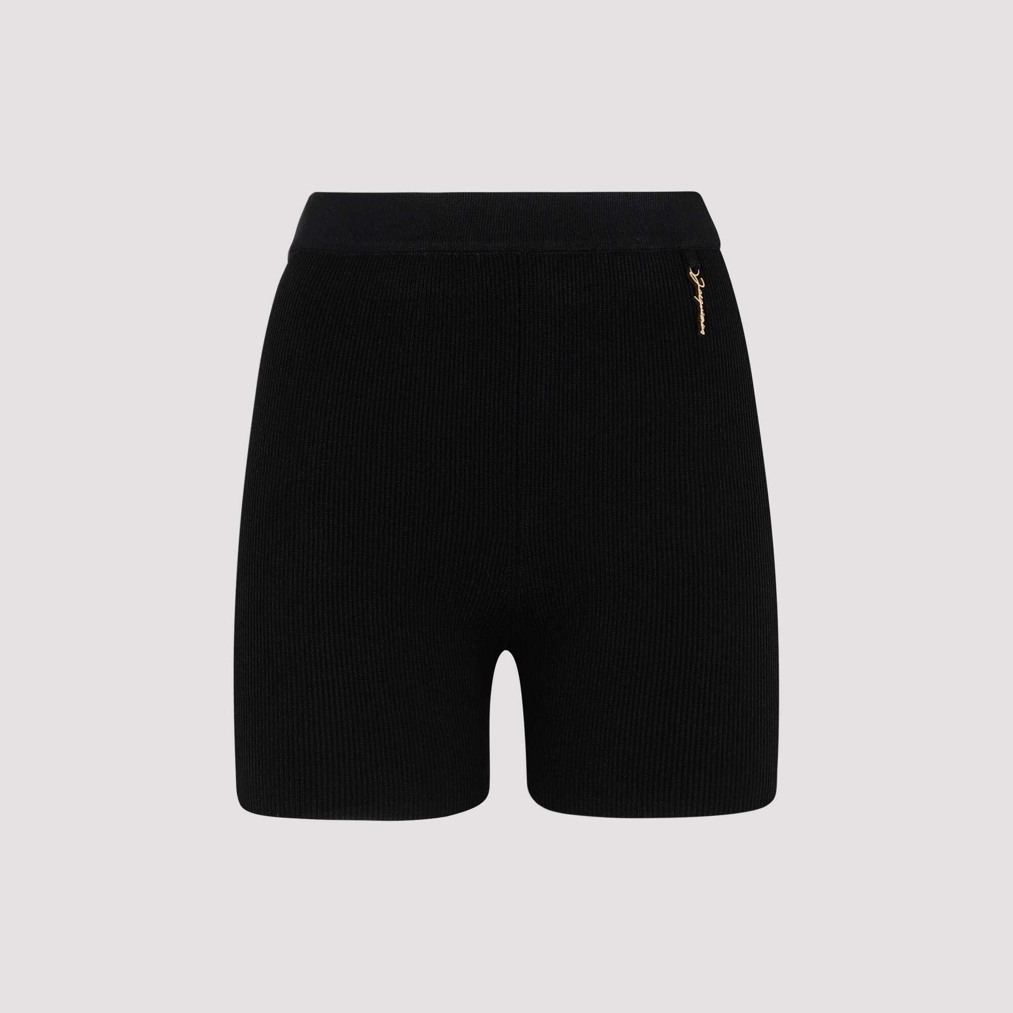 Elevate your style with the JACQUEMUS 231KN503.2060 shorts. Crafted from a luxurious blend of viscose, polyamide, and polyester, these black shorts feature a ribbed knit design, high elasticated waist, and a gold metal charm logo. Perfect for a chic and fitted silhouette. Make a statement with JACQUEMUS.