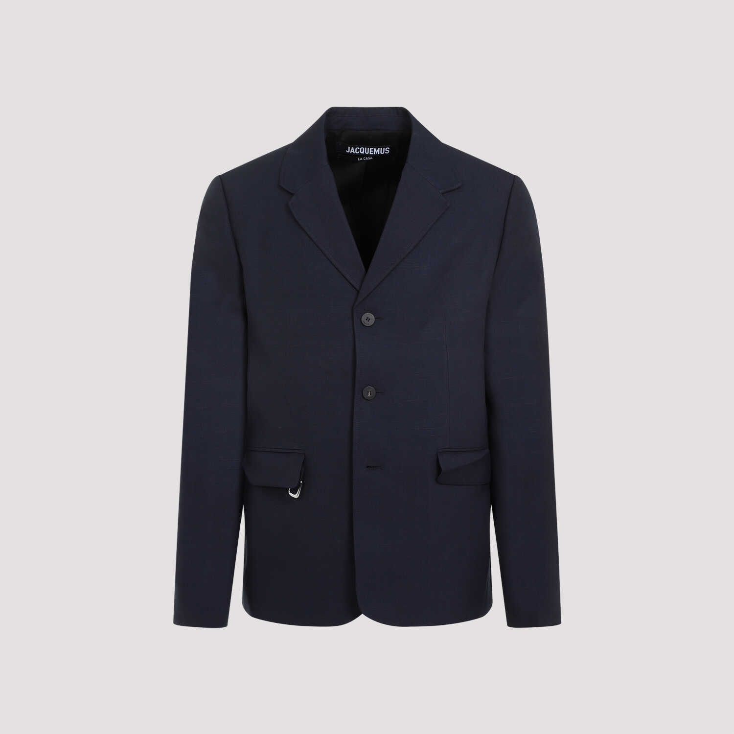 Elevate your style with the Jacquemus La Vest Cabri Dark Navy Jacket. Made from premium stretch cotton in a deep navy shade, this jacket features elegant notched lapels, a sleek single-breasted design, and functional front flap pockets. The metal D detail adds a touch of sophistication, while the padded shoulders and buttoned cuffs ensure a comfortable fit. Complete your look with this must-have piece from JACQUEMUS. Shop now!