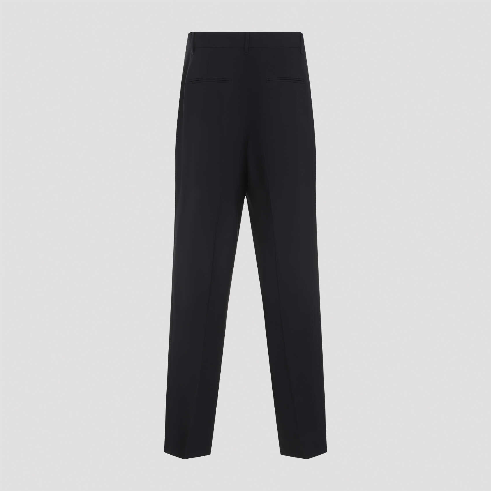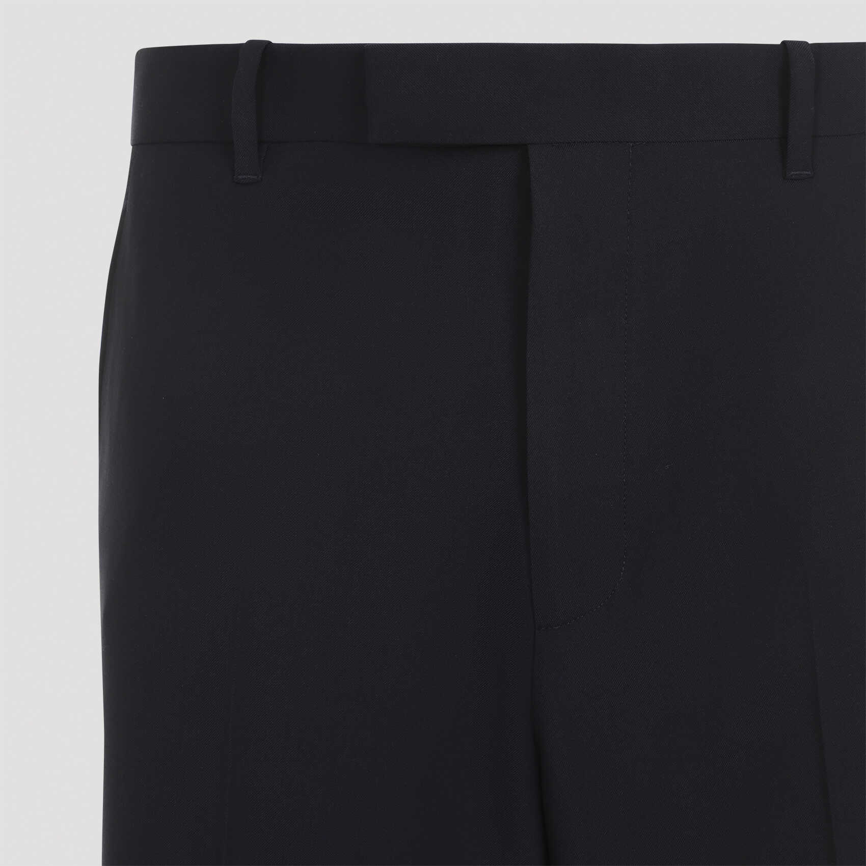 The Row Dark Navy-Blue Wool Elijah Pants. Pure dark navy-blue wool pants, front concealing hook and zipped fastening, belt loops, side pockets, back slit pockets, straight hem.
