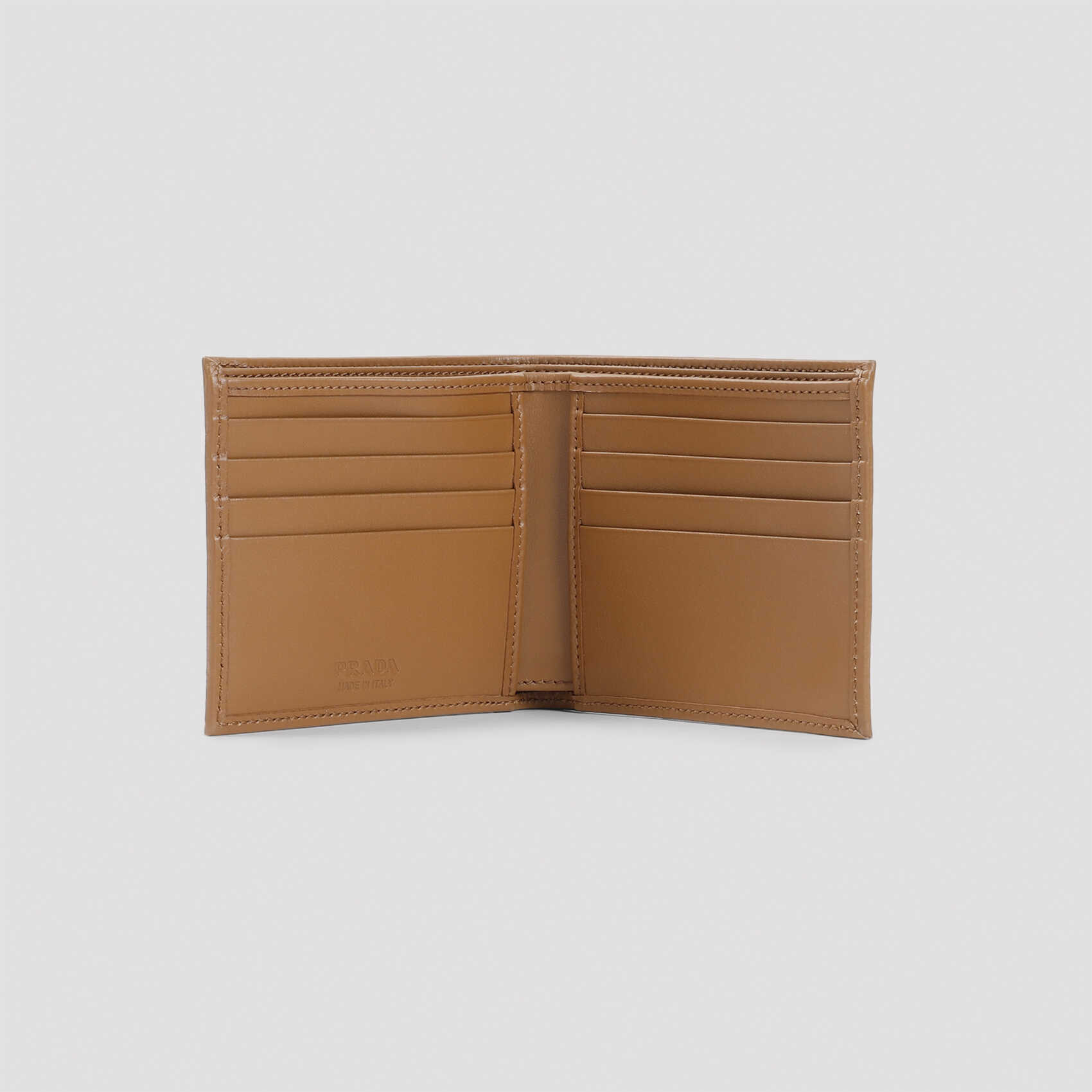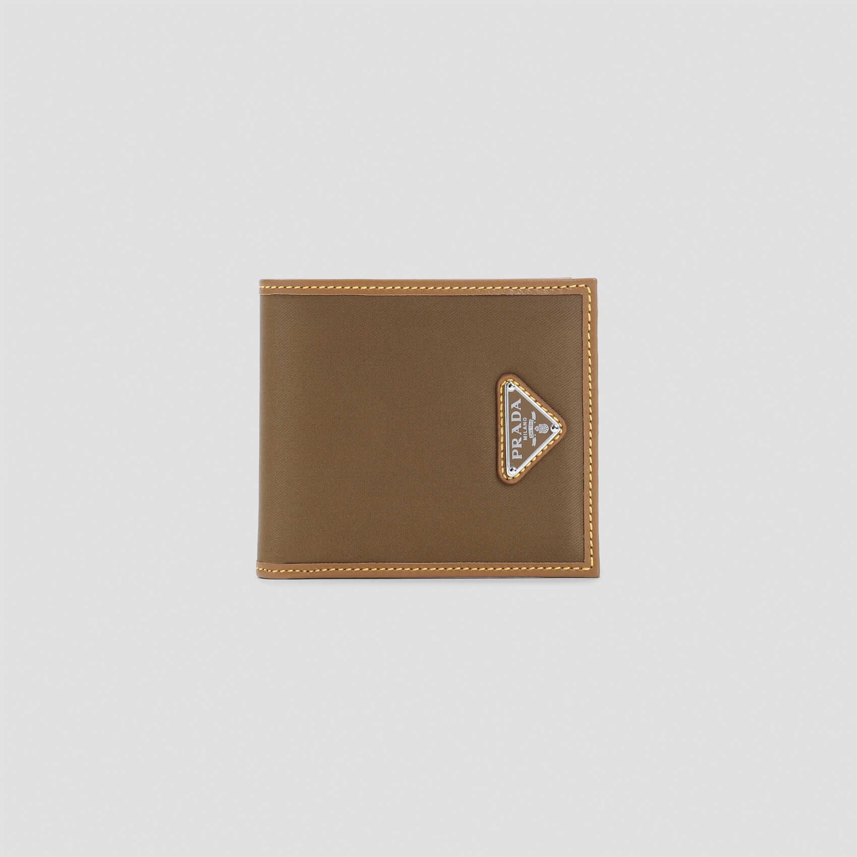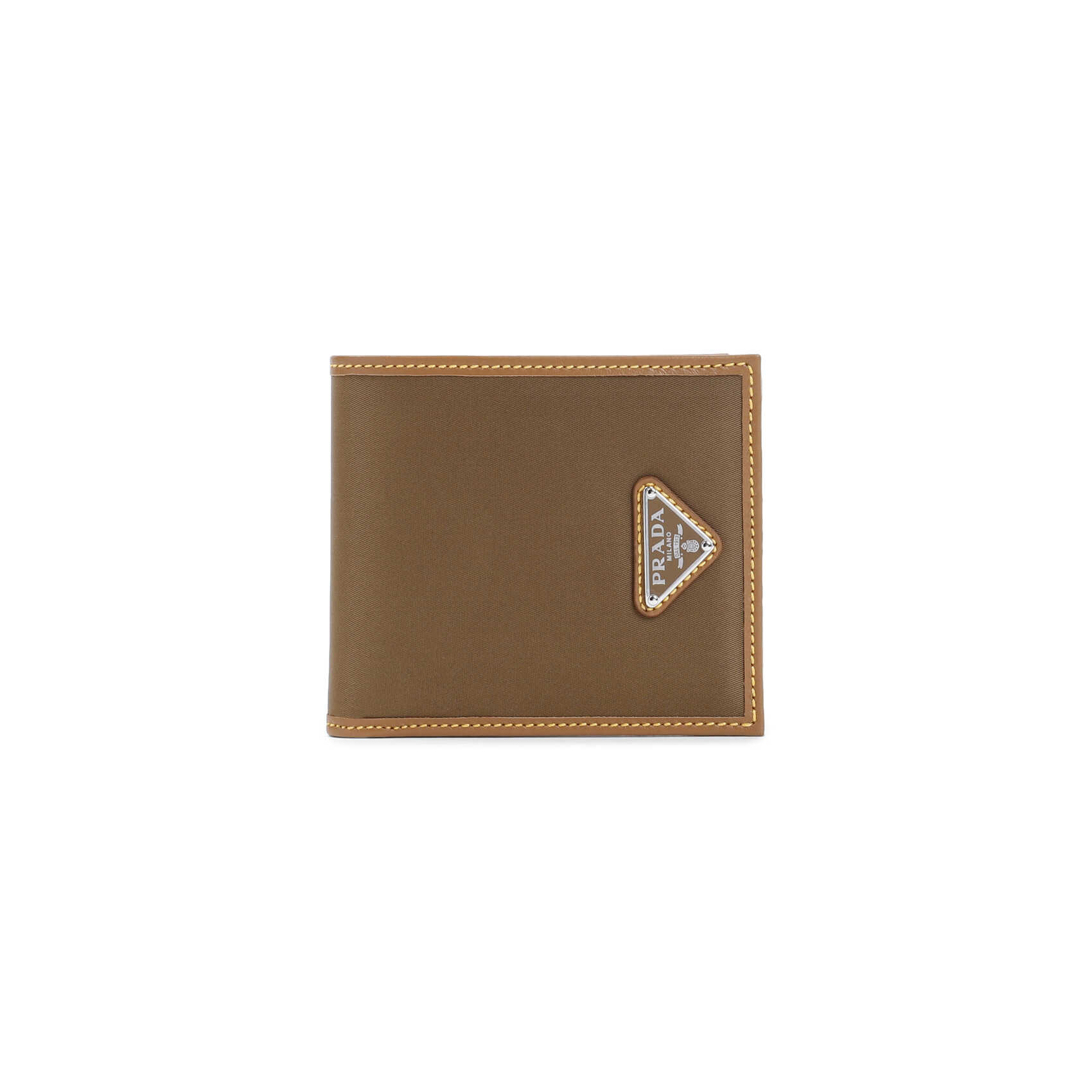 Elevate your style with this luxurious Prada wallet. Crafted from high-quality polyamide and calf leather, this brown wallet features a unique metallic logo, multiple card slots, and a spacious compartment for bills. Perfect for the modern man on the go. Make a statement with PRADA 2MO513.2CX2.