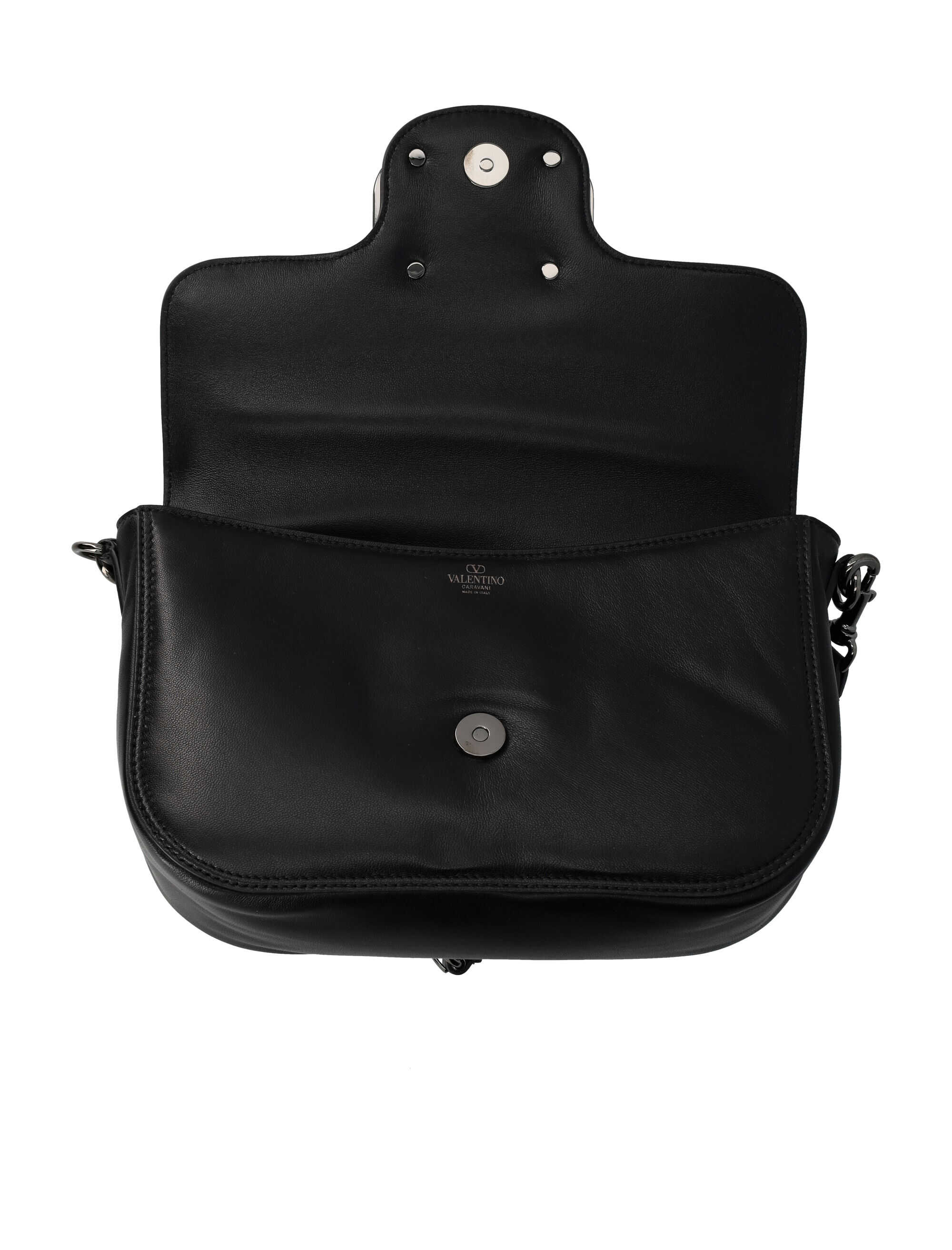Elevate your style with this iconic All time shoulder bag by Valentino. Crafted from luxurious lambskin leather, this bag features an adjustable shoulder strap, magnetic flap closure, and interior slip pocket. The perfect accessory for any occasion.
