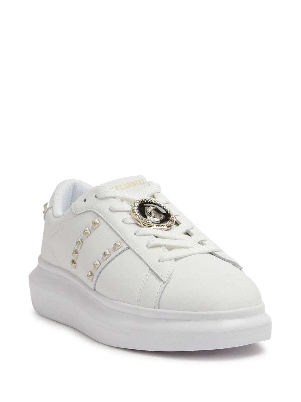 Step into elegance with the Just Cavalli White Sneakers. Crafted with premium materials, these stylish shoes offer comfort and sophistication. Perfect for any occasion, they elevate your style while ensuring you stay on-trend and confident.
