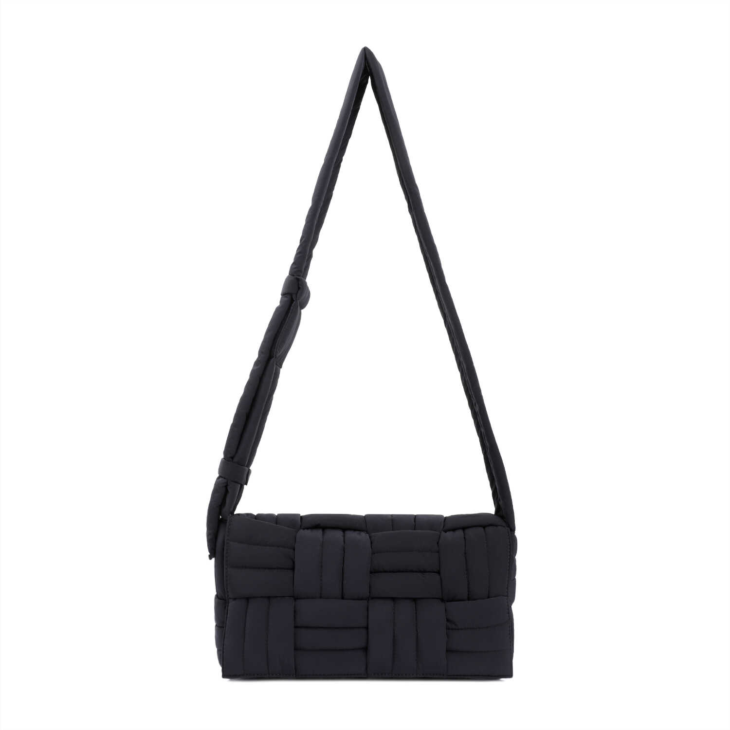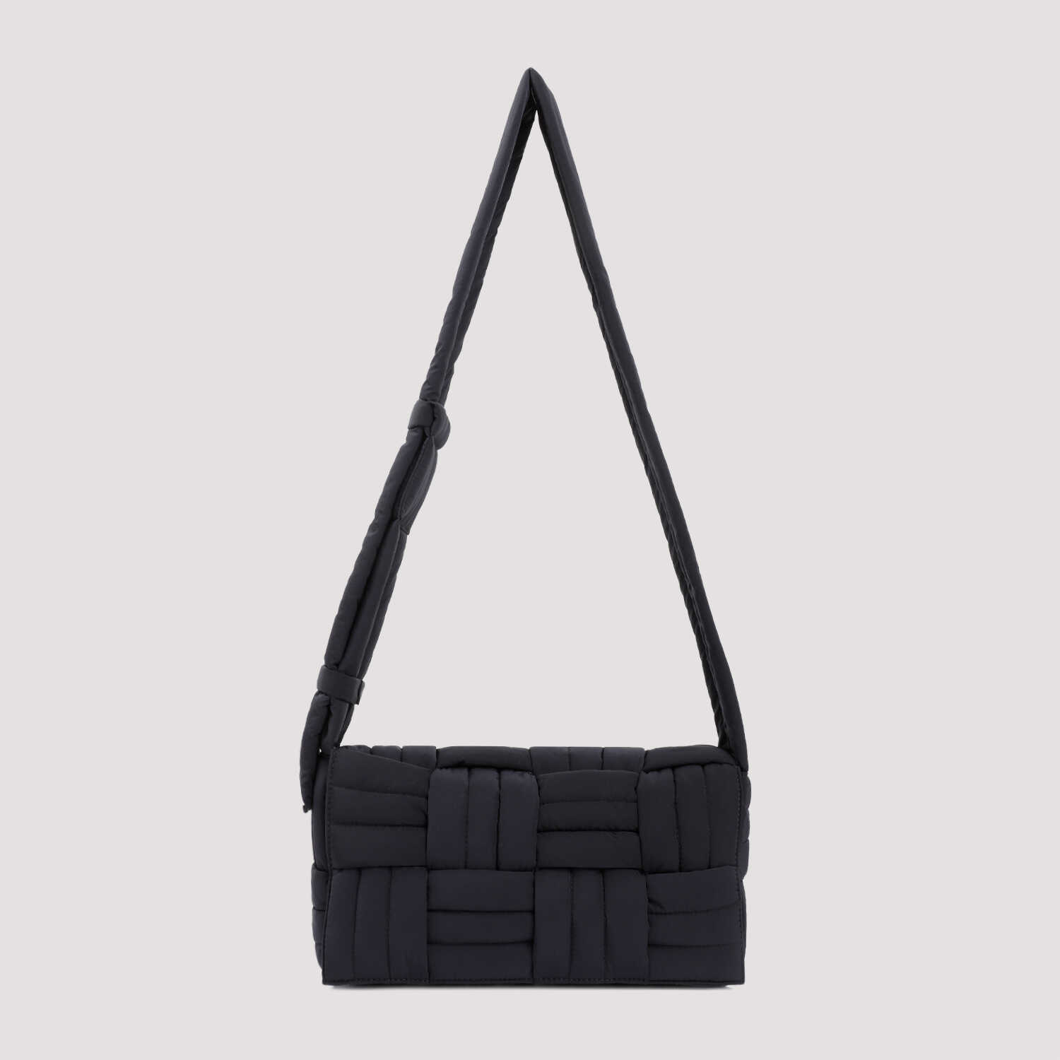 Elevate your style with the Bottega Veneta Tech Cassette Stitch Black Shoulder Bag. Crafted from durable polyamide, this bag features a sleek interwoven design with a quilted pattern. The adjustable shoulder strap and concealed magnetic closure add functionality, while the internal zipper pouch keeps your essentials secure. Perfect for the modern man on the go. Dimensions: W:32cm H:15cm D:9cm.