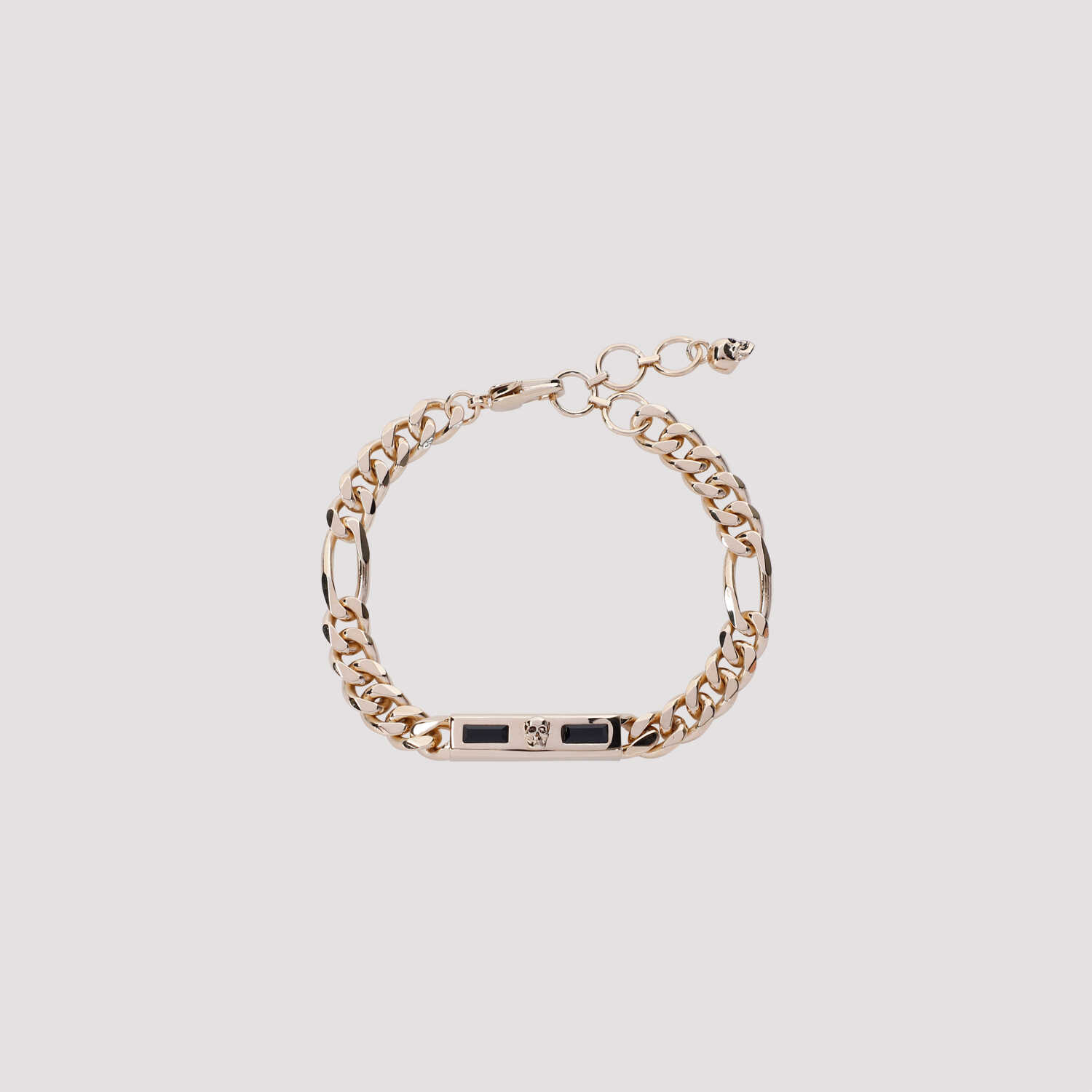 Elevate your style with the luxurious ALEXANDER MCQUEEN metallic brass bracelet. Crafted from high-quality brass, this accessory features a stunning design with an embossed logo, signature skull, and sparkling crystals. The clasp closure adds a touch of elegance, while the adjustable fit ensures comfort. Perfect for adding a touch of sophistication to any outfit.