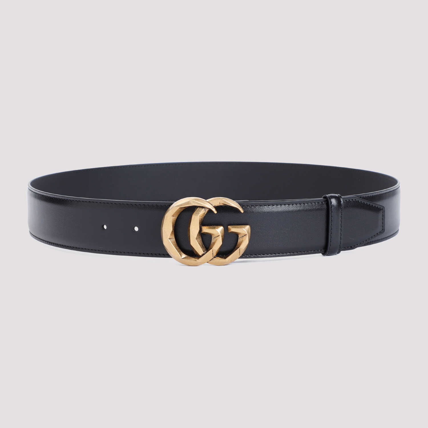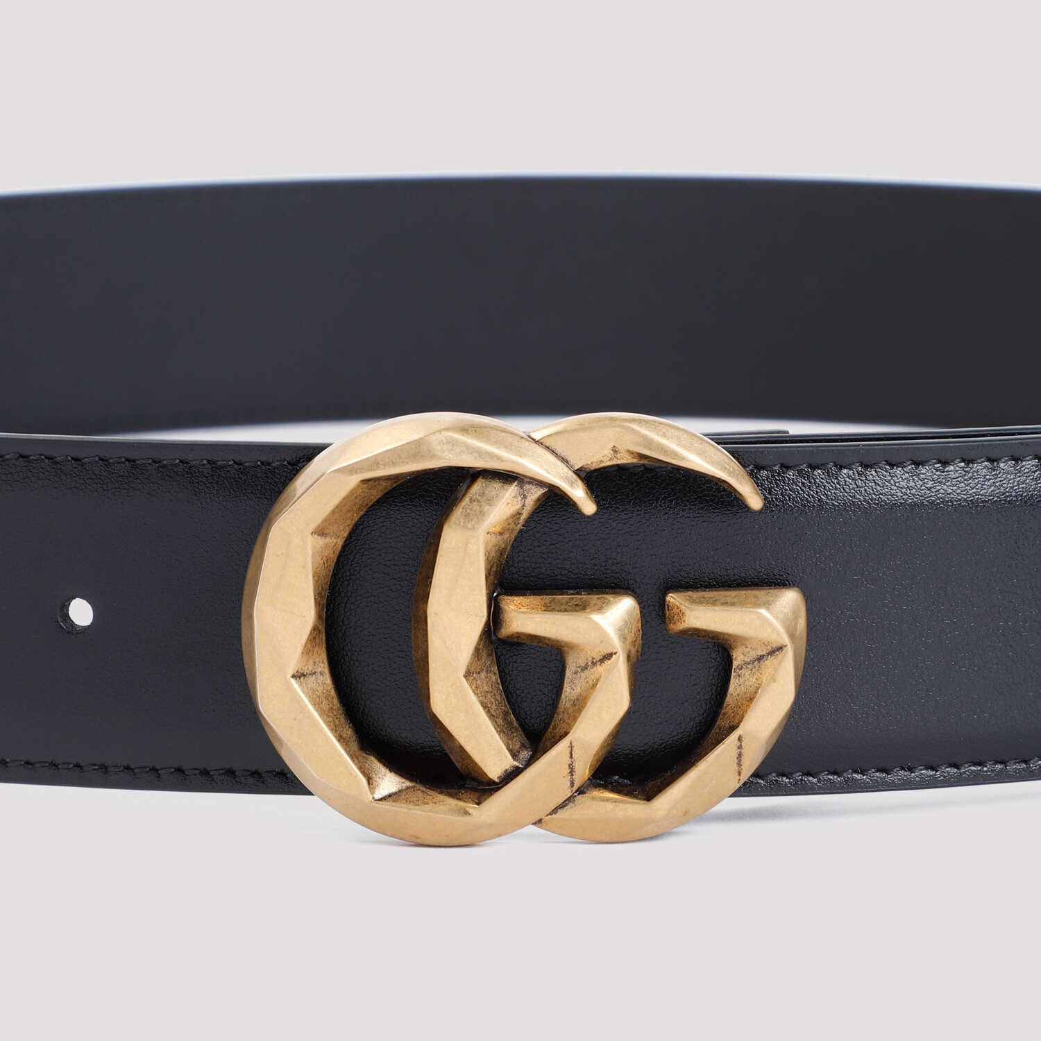 Elevate your style with this sleek Gucci black leather belt featuring a signature GG logo buckle. Made with high-quality leather and adjustable for the perfect fit. Perfect accessory for men's fashion. Add a touch of luxury to your wardrobe with this timeless piece.