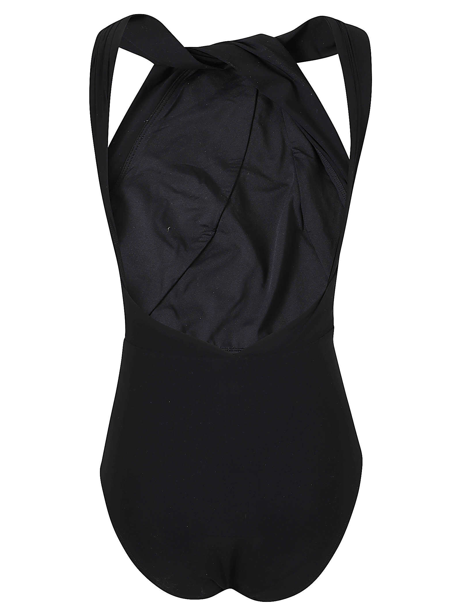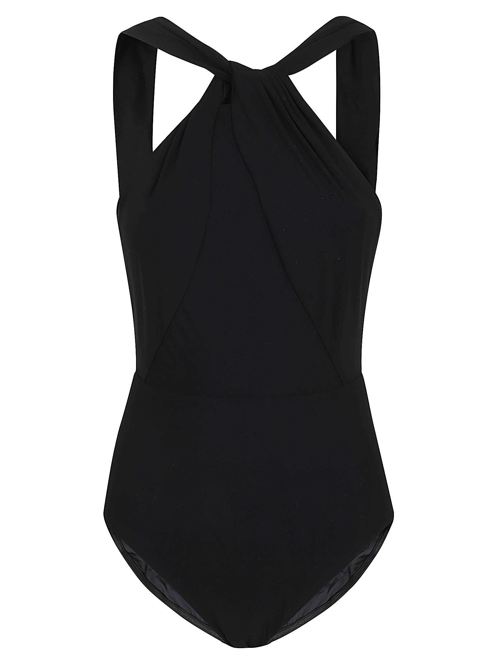 Make a statement at the beach with this elegant black one-piece swimsuit by Zimmermann. The draped turtleneck and crisscross detail add a touch of sophistication. With a regular fit, this suit is perfect for any body type. Made from high-quality Polyamide and Elastane blend, this suit is both stylish and comfortable. Elevate your swimwear collection with ZIMMERMANN 9458.WSS242!