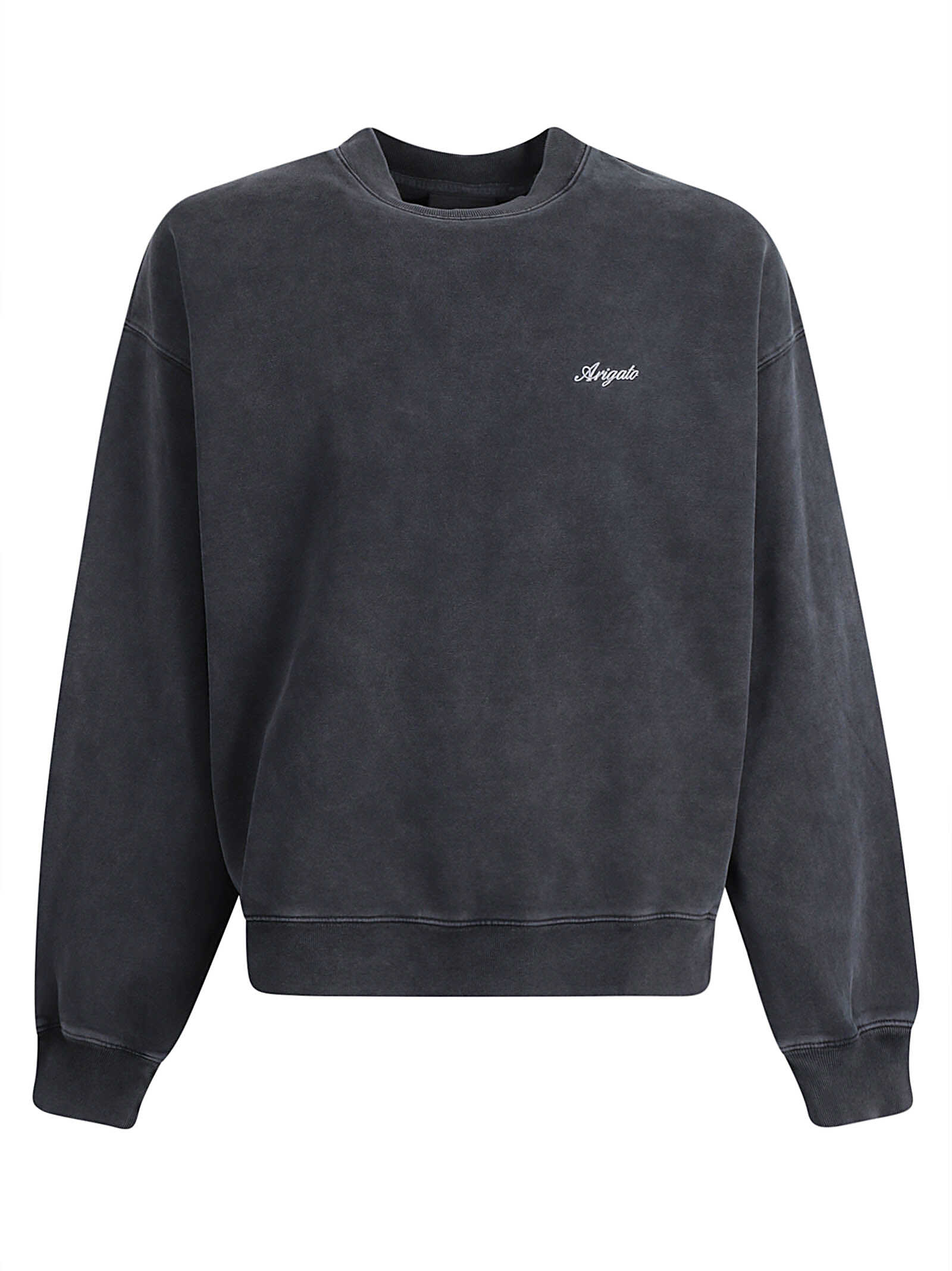 Stay stylish and sustainable with this black crew neck sweater from AXEL ARIGATO. Made from 100% organic cotton, featuring ribbed cuffs and hem, and an embroidered logo at the chest. Partnered with Good On You for conscious fashion. Elevate your wardrobe with this eco-friendly choice.