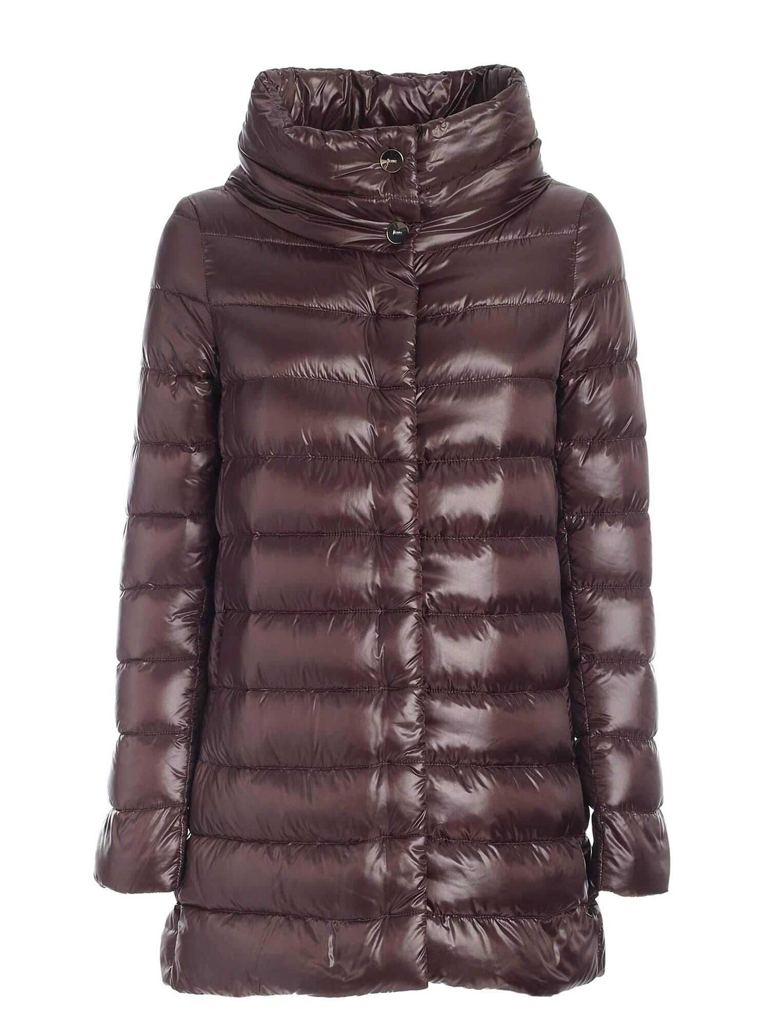 Stay warm and stylish in the Amelia Jacket by HERNO. This brown down jacket features a unique crater collar and golden metal logo detail. With a longer back and invisible button closure, it's the perfect mix of fashion and function. Made in Romania with high-quality materials, including 100% polyamide and 90% down padding. A must-have for any fashion-forward woman's wardrobe.