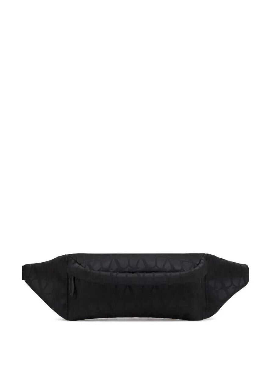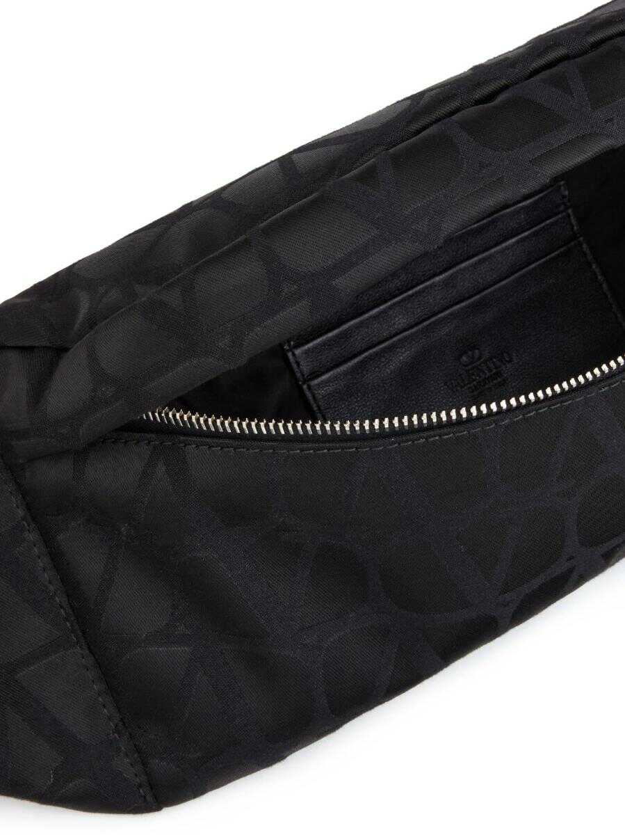 black, cotton blend, palladium-tone hardware, front zip fastening, adjustable waist strap, buckle fastening and Black Iconographe pattern