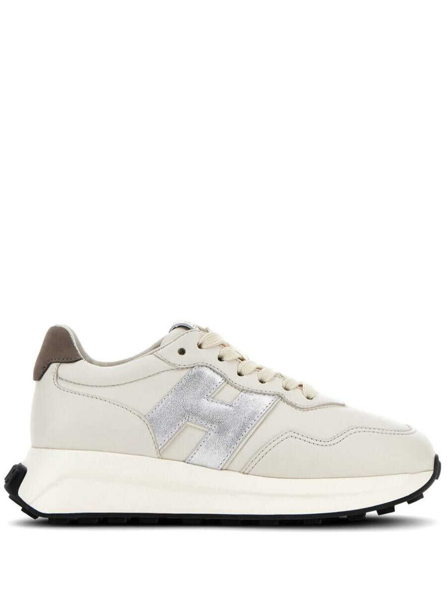 light grey/silver-tone leather panelled design logo patch to the side metallic finish logo patch at the tongue contrasting heel counter almond toe front lace-up fastening branded insole memory foam insole rubber sole