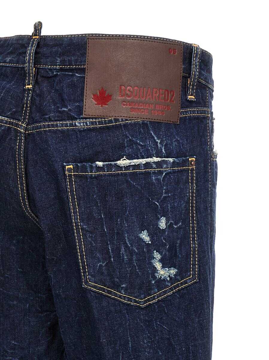 'Cool Guy' cotton denim jeans with used-effect details, button closure, five pockets, maxi leather logo tag