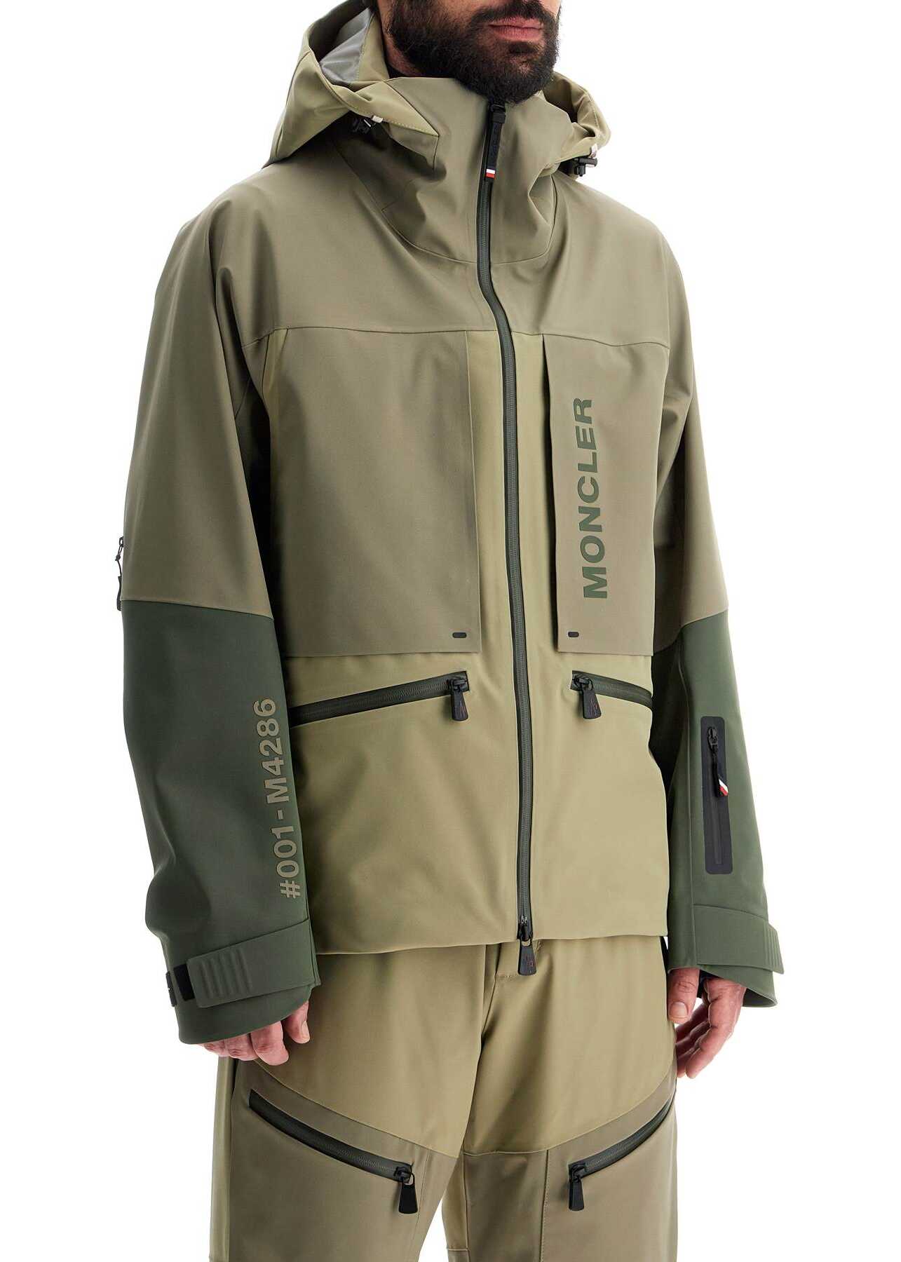 The Moncler Grenoble ski jacket is made of waterproof and windproof technical shell with an adjustable hood. It features jersey thumbhole cuffs, an internal windproof gaiter, and a ski pass pocket. The sporty design is enriched with functional details such as waterproof zippers, ventilation openings with zippers behind the sleeves, Velcro tabs at the bottom of the sleeves, adjustable hem, two pockets on the bottom, and two hidden chest pockets. The unlined interior has heat-se