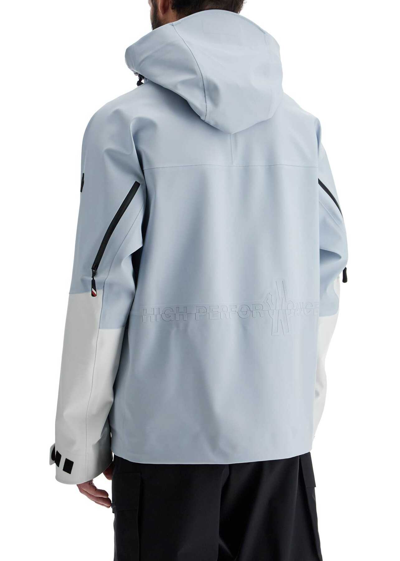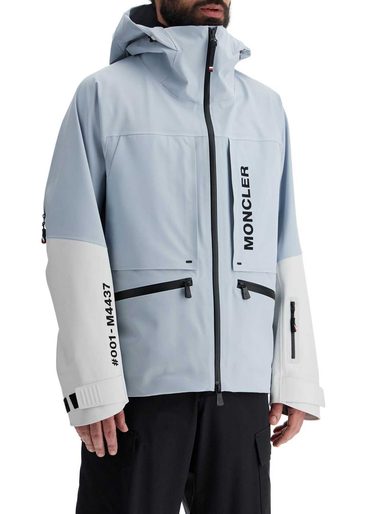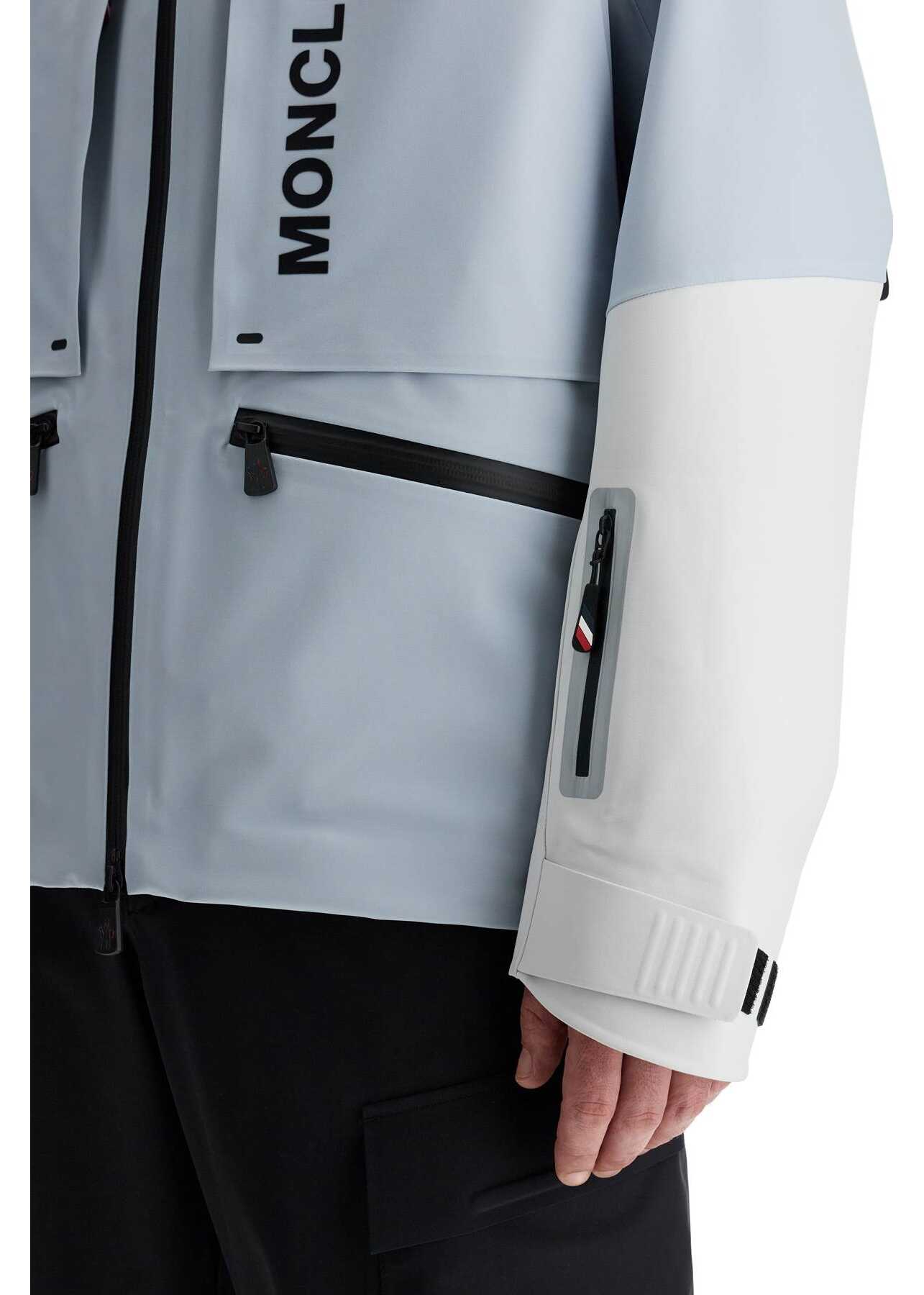 The Moncler Grenoble ski jacket is made of waterproof and windproof technical shell with an adjustable hood. It features jersey thumbhole cuffs, an internal windproof gaiter, and a ski pass pocket. The sporty design is enriched with functional details such as waterproof zippers, ventilation openings with zippers behind the sleeves, Velcro tabs at the bottom of the sleeves, adjustable hem, two pockets on the bottom, and two hidden chest pockets. The unlined interior has heat-se