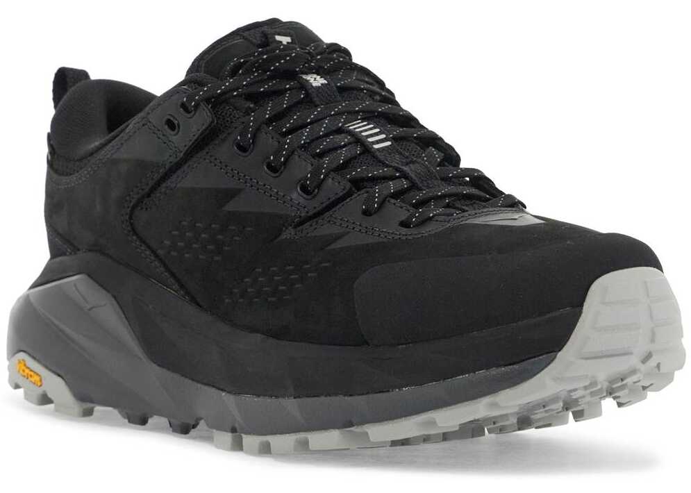 Hoka presents a new version of the classic Kaha LOW GTX with a textured nubuck layer on top of a mesh base and enhanced cushioning. These trekking sneakers feature a rubber-coated toe, rear pull tab, fabric lining with removable insole. They are equipped with GORE-TEX membrane and Vibram® Megagrip sole for better ground contact. Spare laces included.