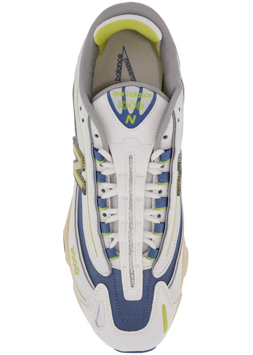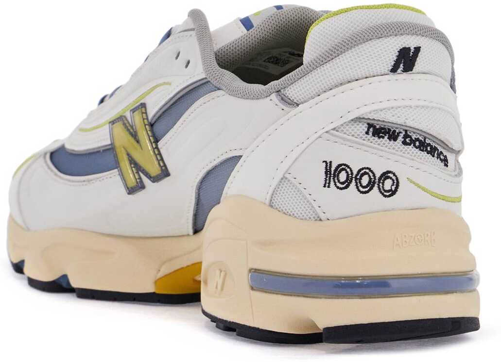 The New Balance 1000 Sneakers feature a mesh upper with contrasting leather inserts. They have a front lacing system, logo on the tongue, and a fabric interior with a removable insole. The rubber sole offers ABZORB cushioning in the heel and forefoot, as well as Stability Web support in the middle section.