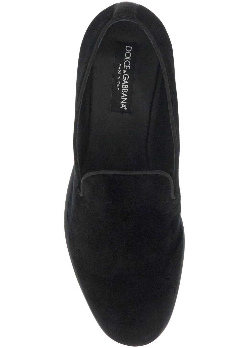 Dolce & Gabbana velvet loafers with tone-on-tone grosgrain trims. Smooth leather lining and leather sole.