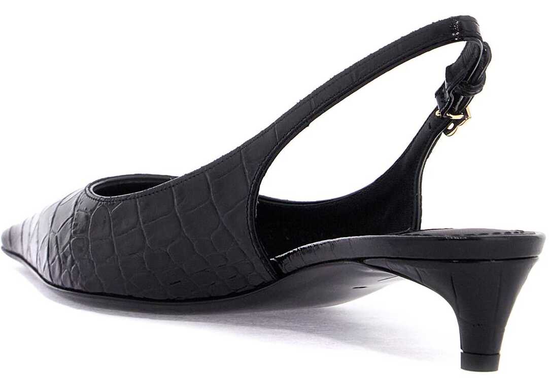 These Dolce & Gabbana slingback pumps are made of glossy crocodile-printed leather and feature a DG logo in gold metal on the adjustable back strap. The design is characterized by a pointed and squared toe and a covered kitten heel. The lining and insole are made of leather, while the sole is made of leather as well.