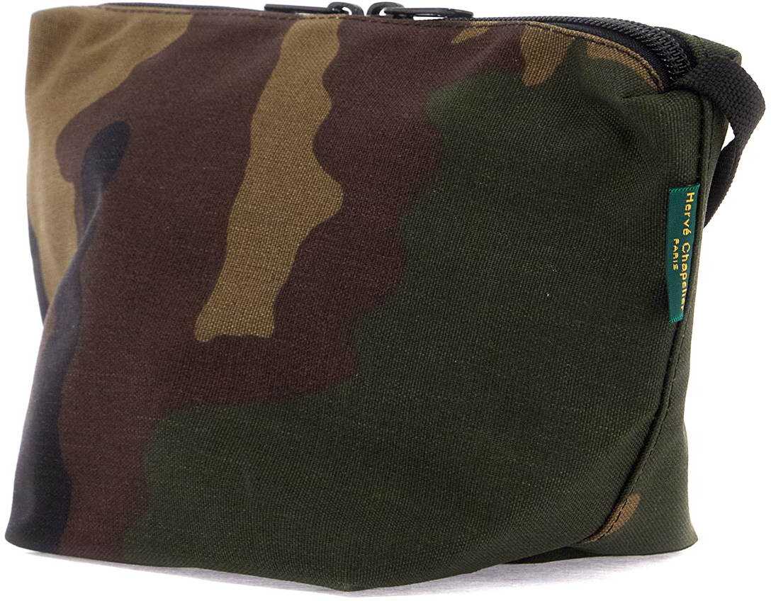 The Hervé Chapelier mini shoulder bag is made of technical canvas with a camouflage print. It features a double zip closure and an unlined interior.